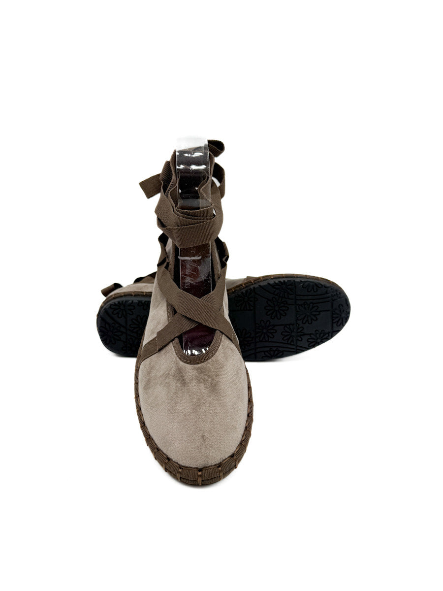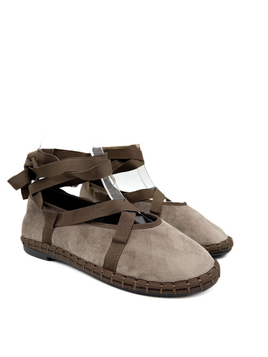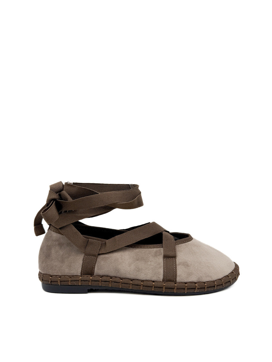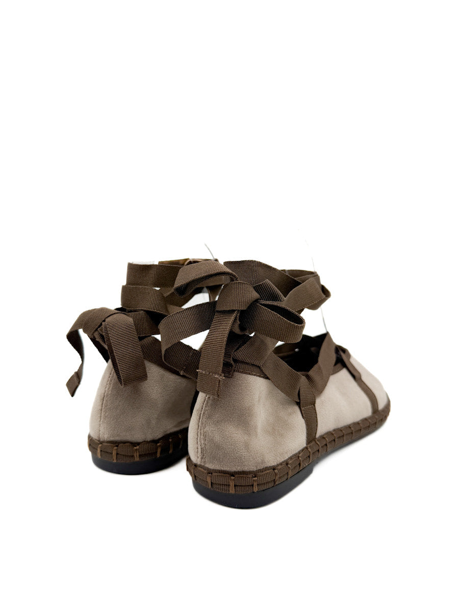 Bailarinas de Terciopelo Tira Cruzadas Con Cinta Atada Kahki