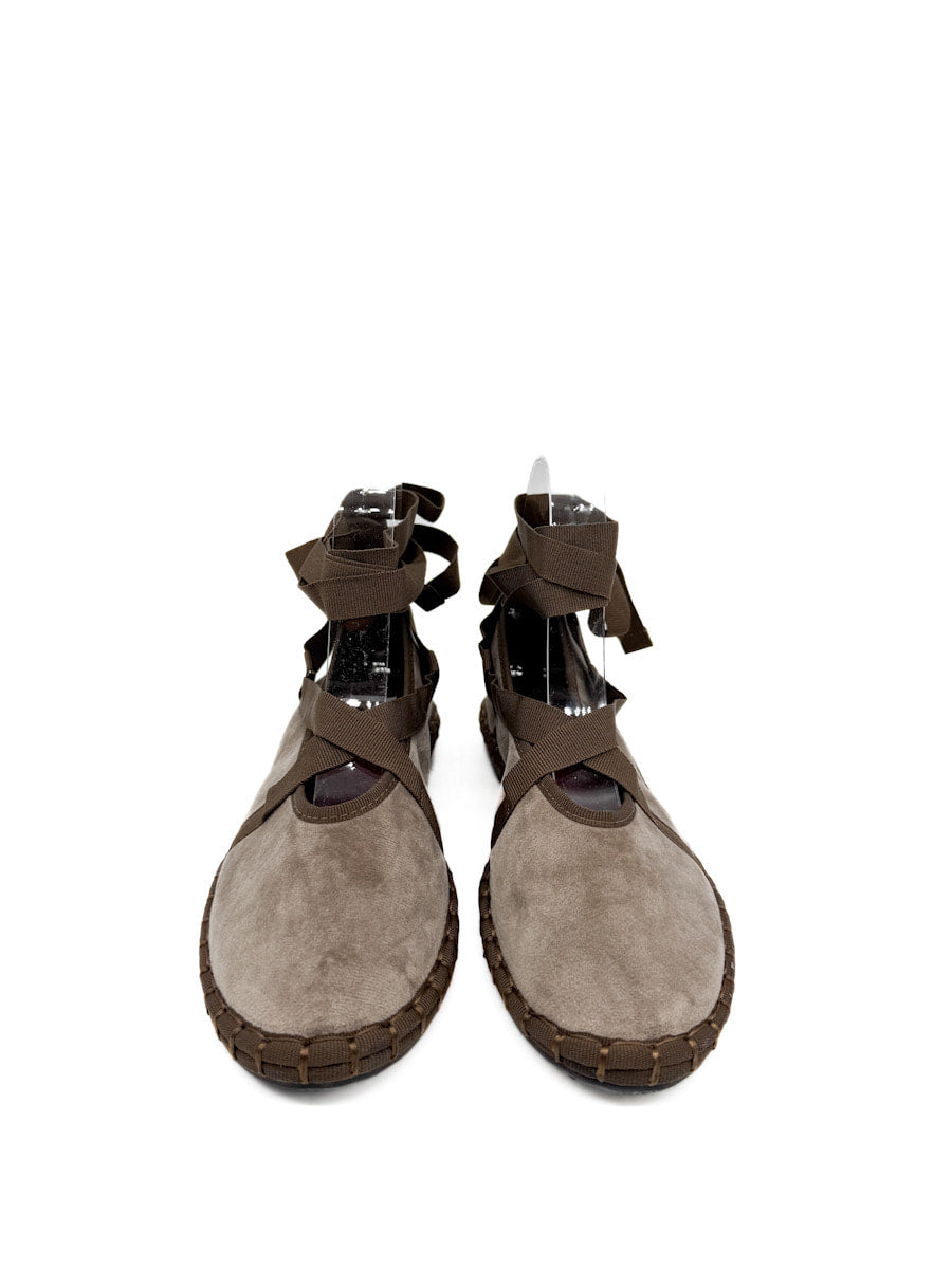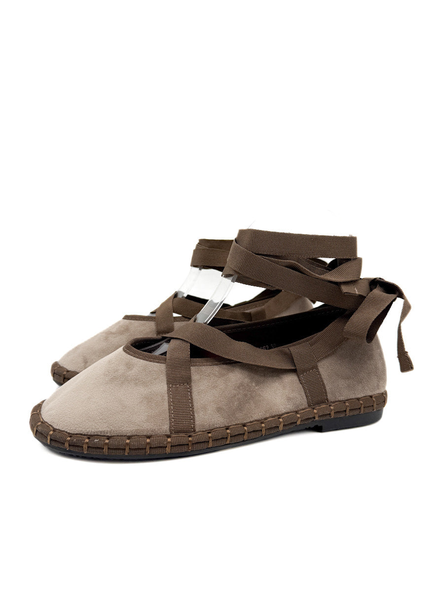Bailarinas de Terciopelo Tira Cruzadas Con Cinta Atada Marrón