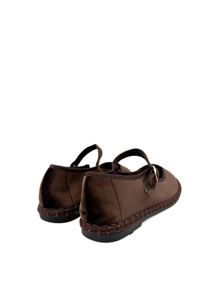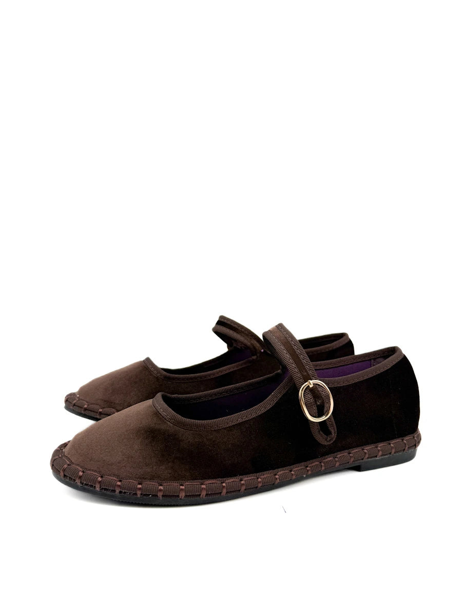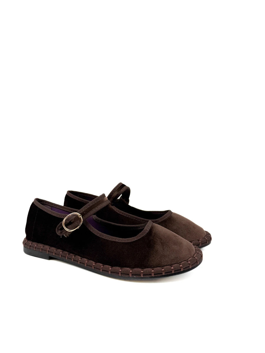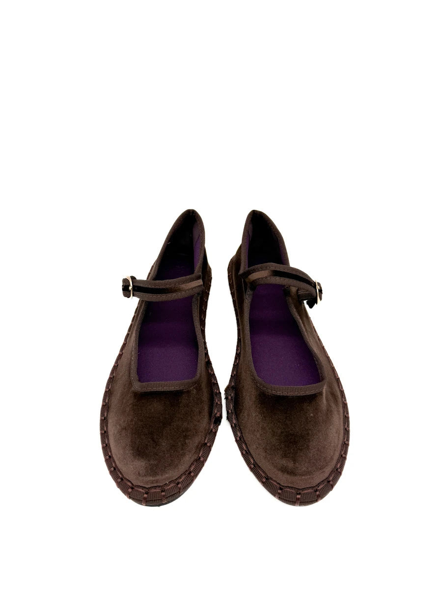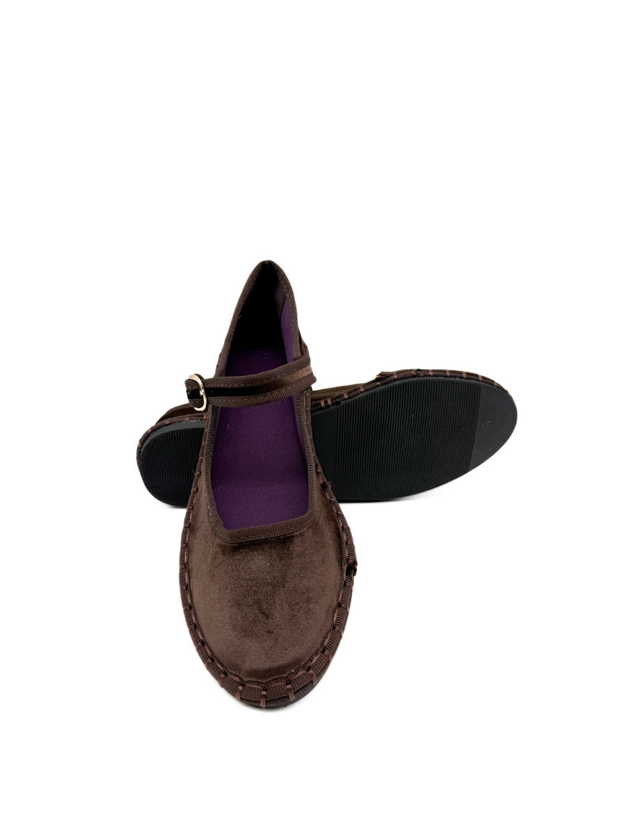 Mercedita Plana de Terciopelo Marrón con Forro Morado