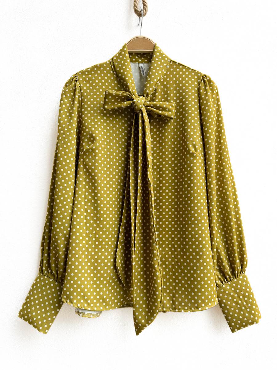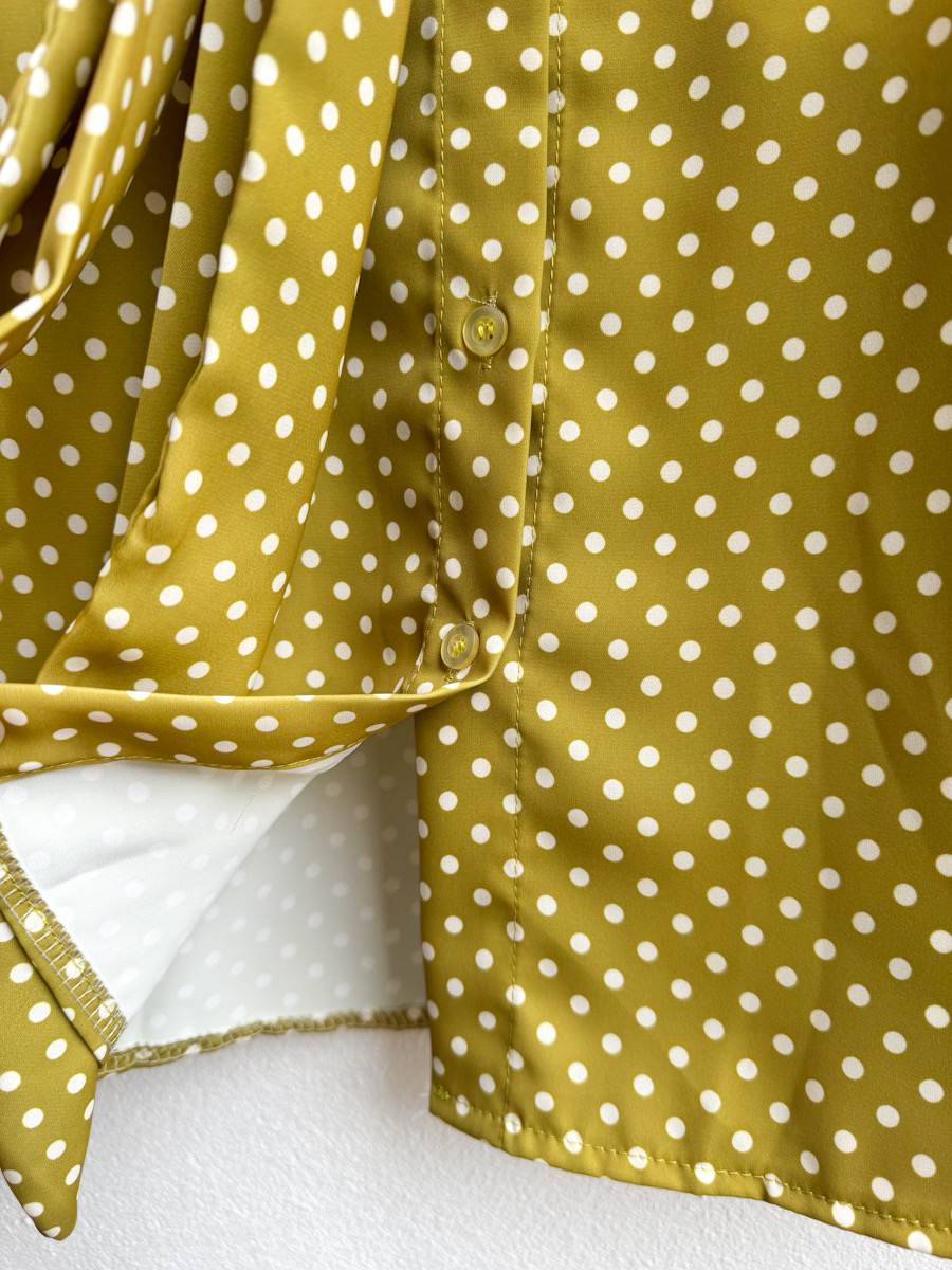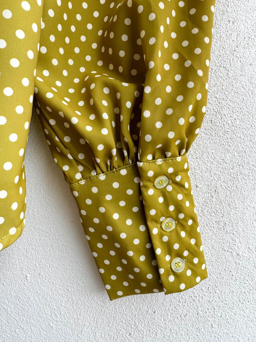 Blusa de Lunares con Lazo en el Cuello, Disponible en Beige y Mostaza Mostaza única