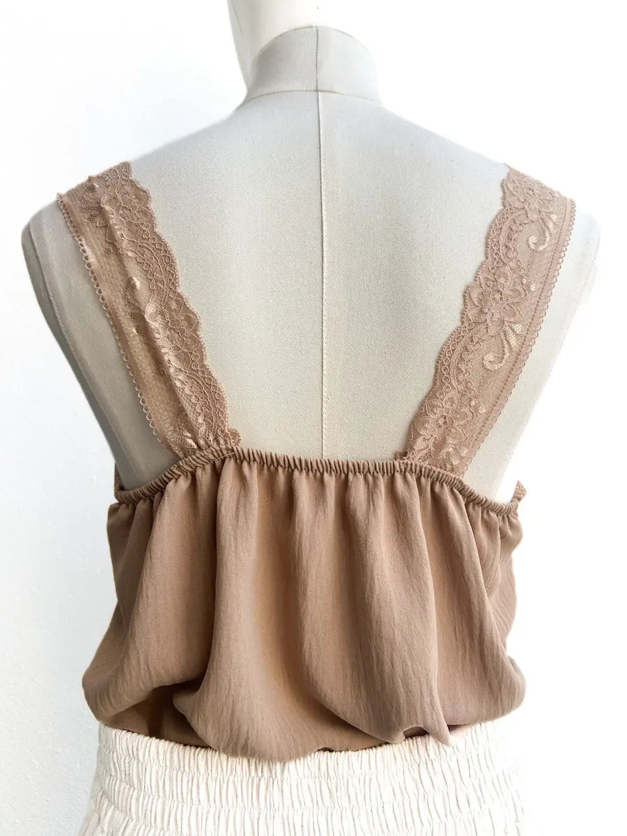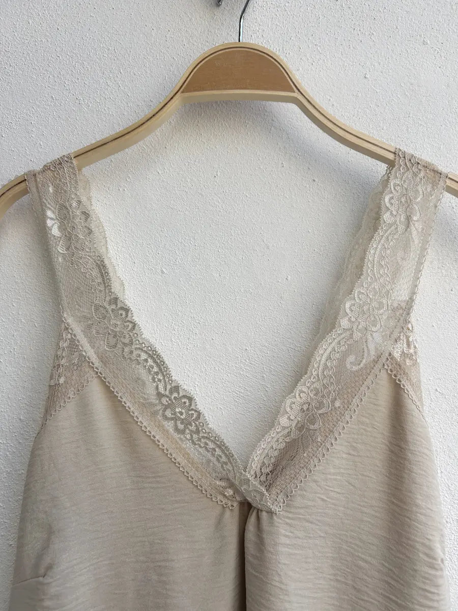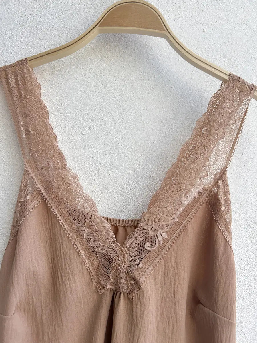 Tirantes: Anchos y decorados con encaje floral, aportando un toque delicado y femenino.