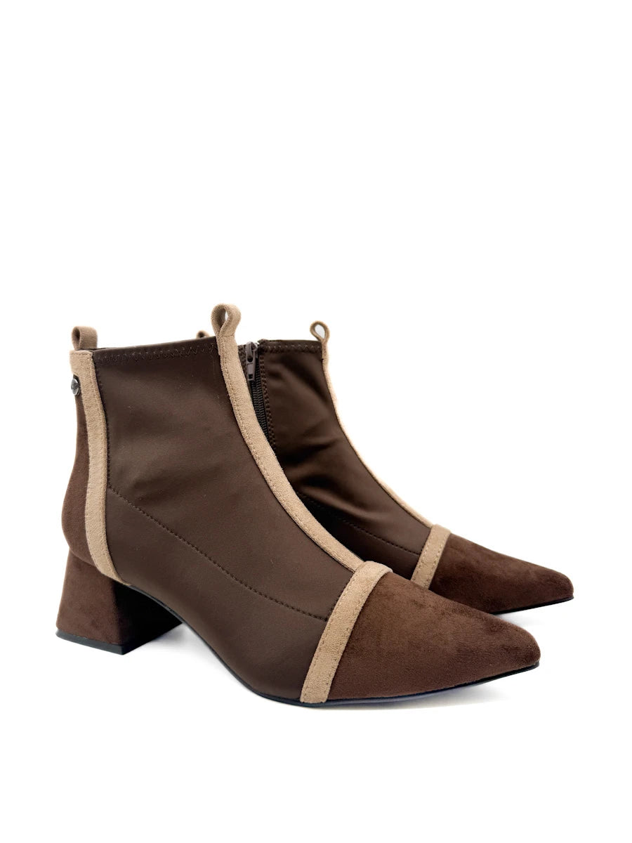 Botín de Tobillo con Diseño Mixto en Tonos Marrones y Beige