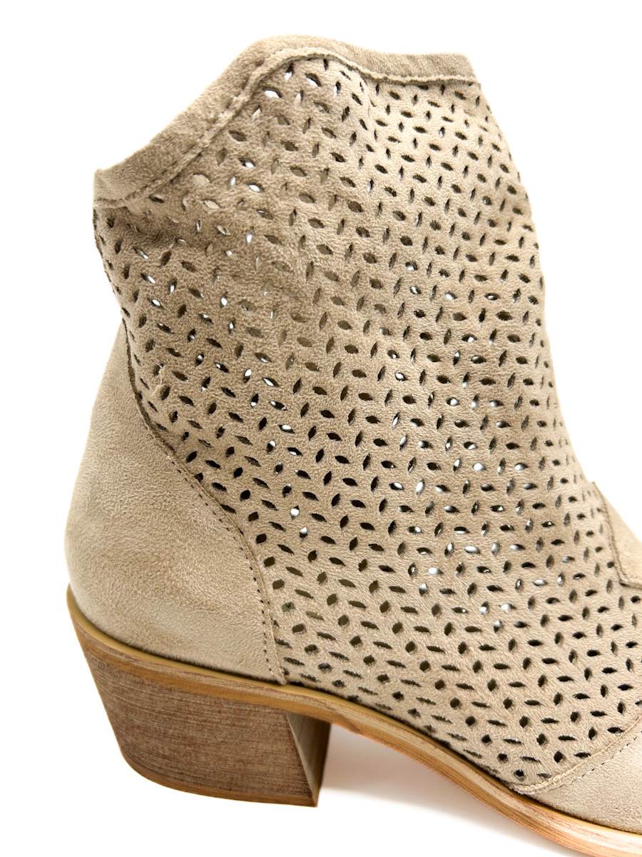 Botín estilo cowboy, Tacón ancho efecto de madera, Cremallera en la parte lateral interior. Corte con detalle de calado a láser, El tacón efecto madera