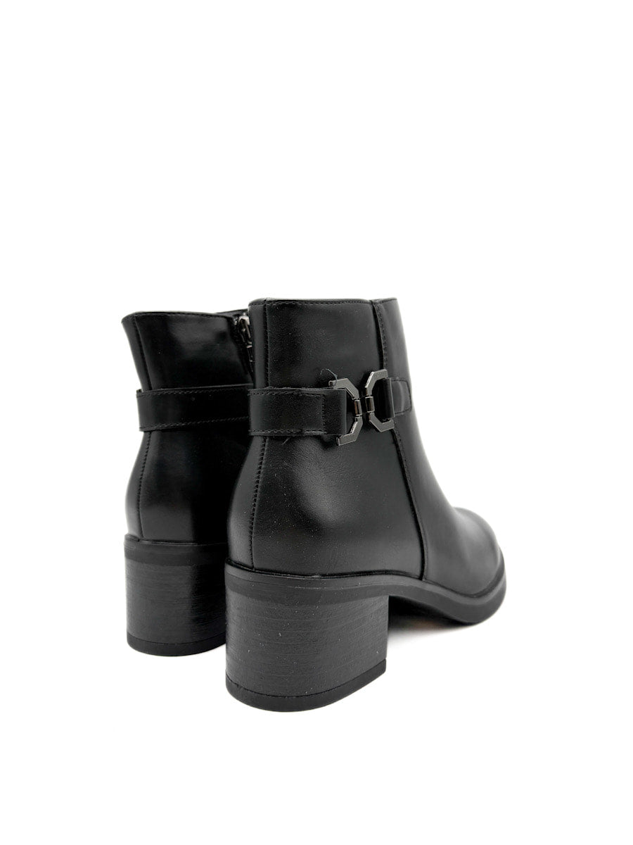 Botines con Tacón Grueso y Hebilla Decorativa Negro