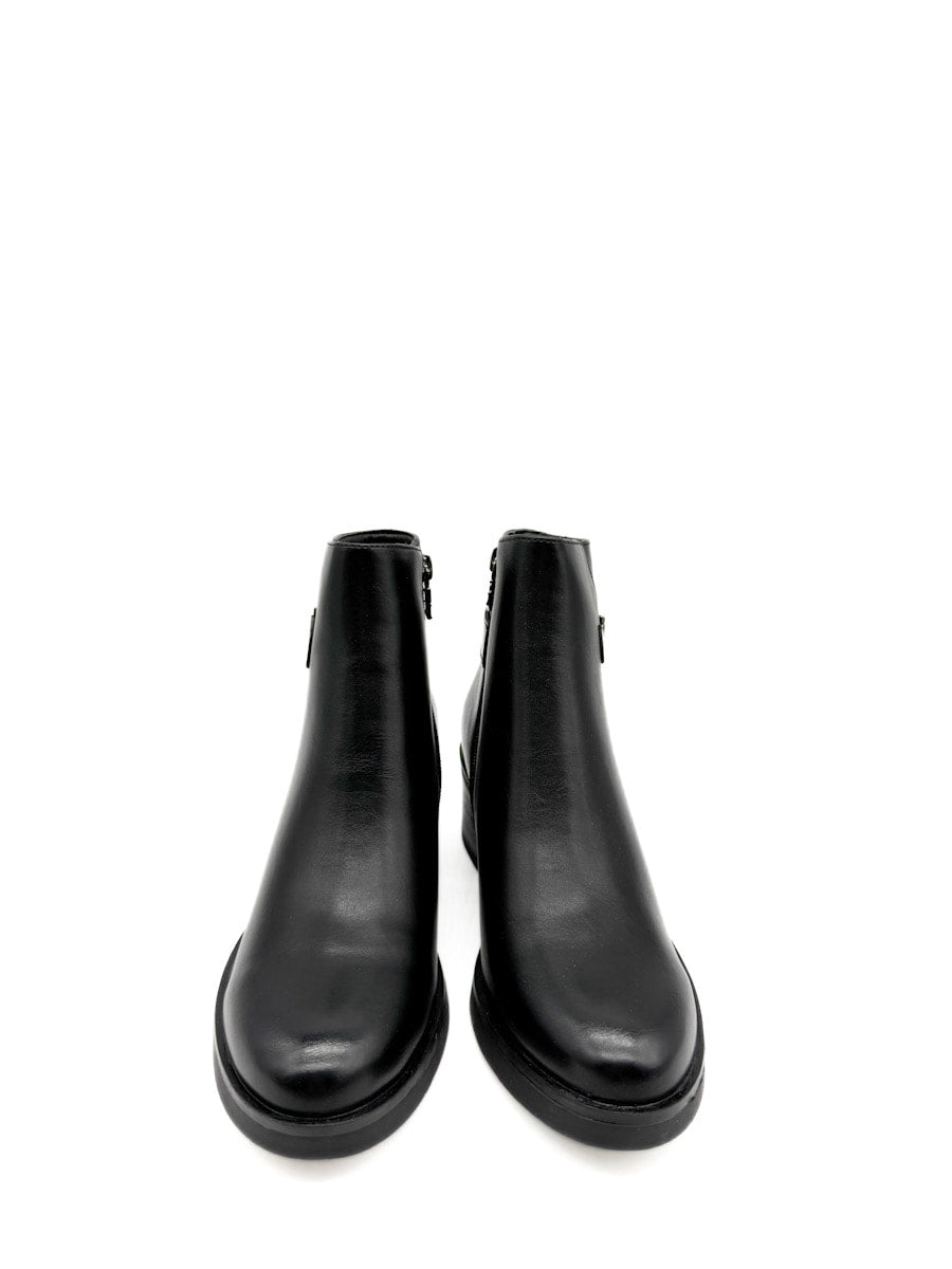 Botines diseño elegante y versátil, disponible en dos colores: marrón oscuro y negro. Fabricadas en un material que simula el cuero con un acabado liso, Un tacón grueso y bajo que garantiza estabilidad y comodidad. Un detalle distintivo es la hebilla metálica en el lateral del tobillo, que añade un toque sofisticado. La suela es robusta y negra, y se observa una cremallera en el interior del talón para facilitar su uso. Su silueta redondeada y la altura de la caña las hacen ideales para combinar con una amplia variedad de estilos,
