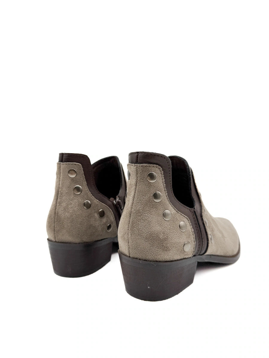 Botines cowboy con tachuelas y cremallera lateral Kahki