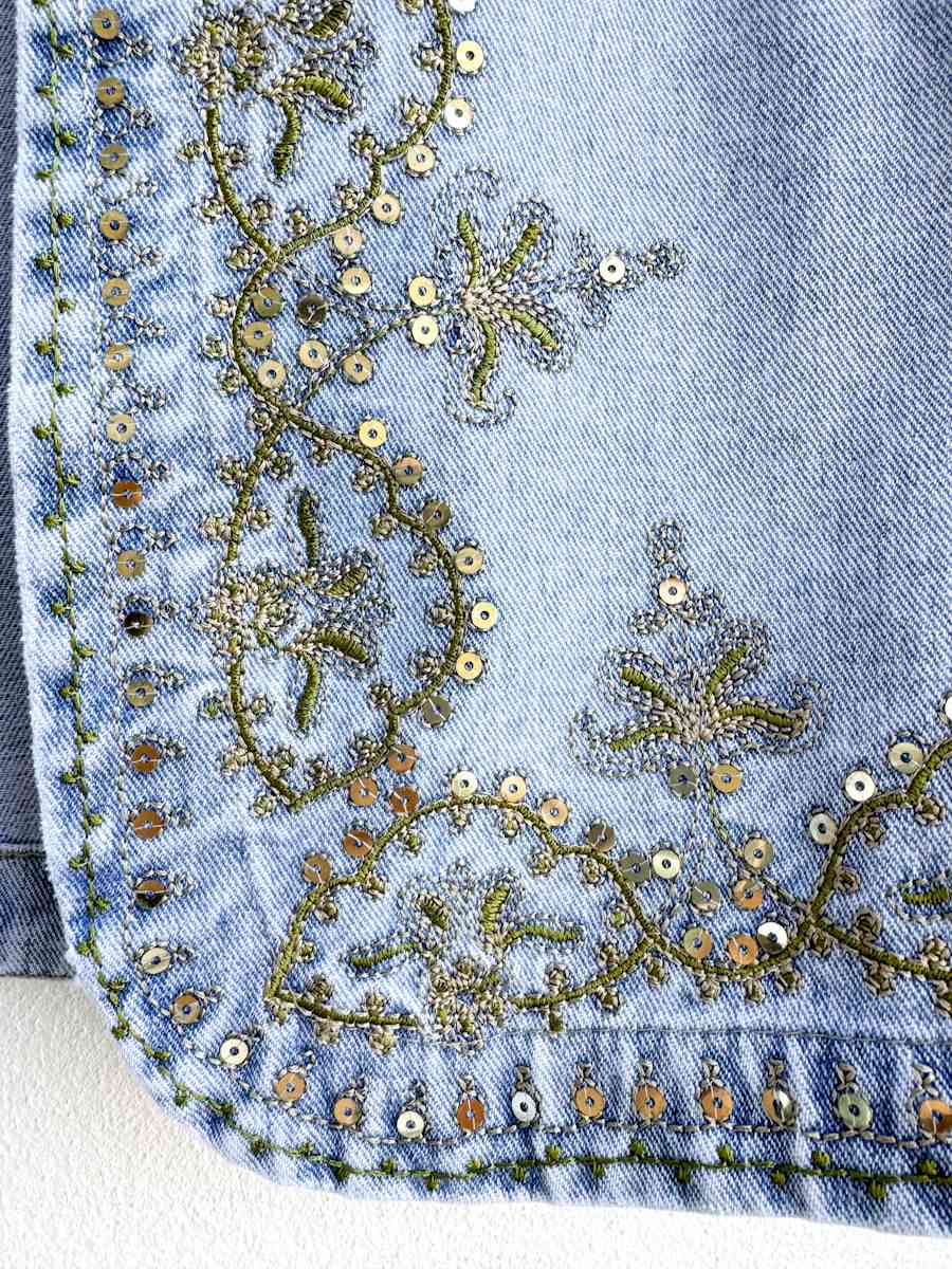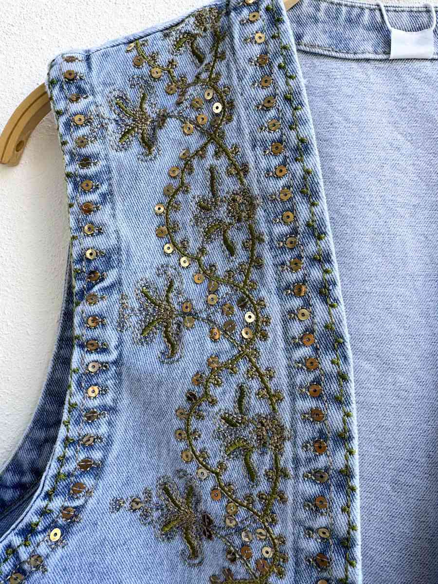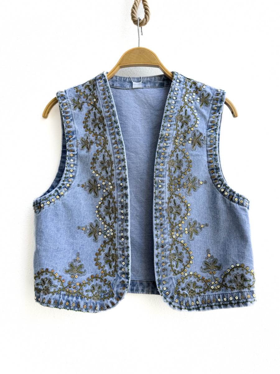 Chaleco bordado en color verde con lentejuelas, talla S, M, L.