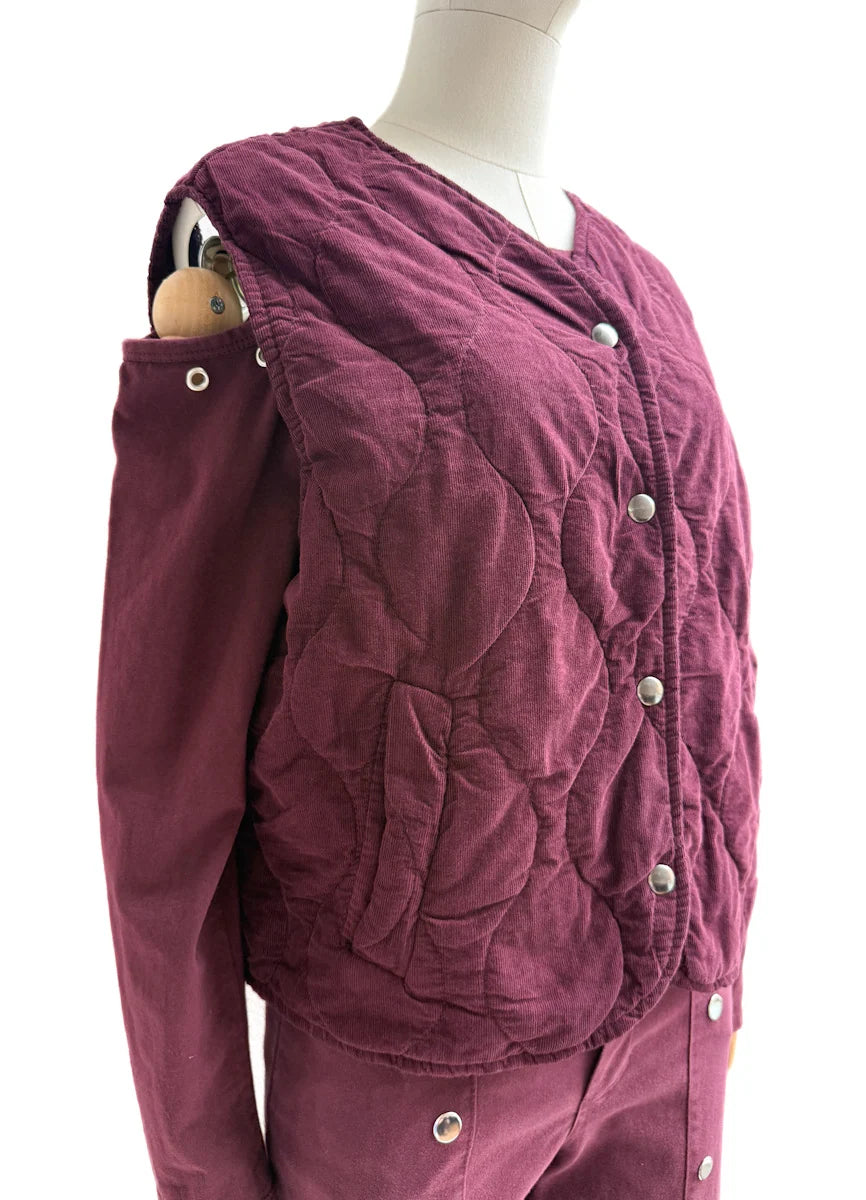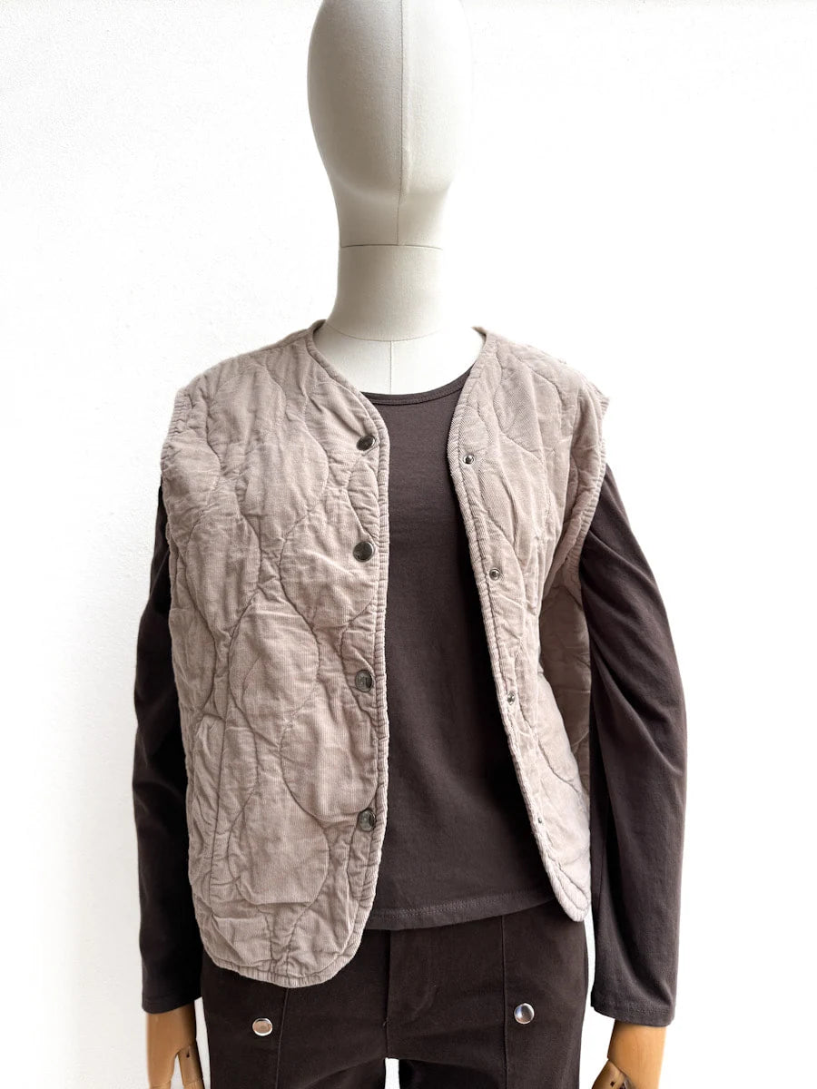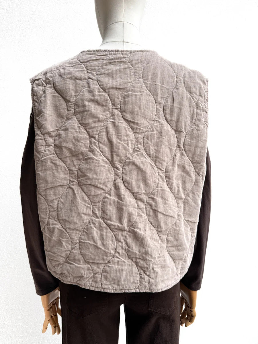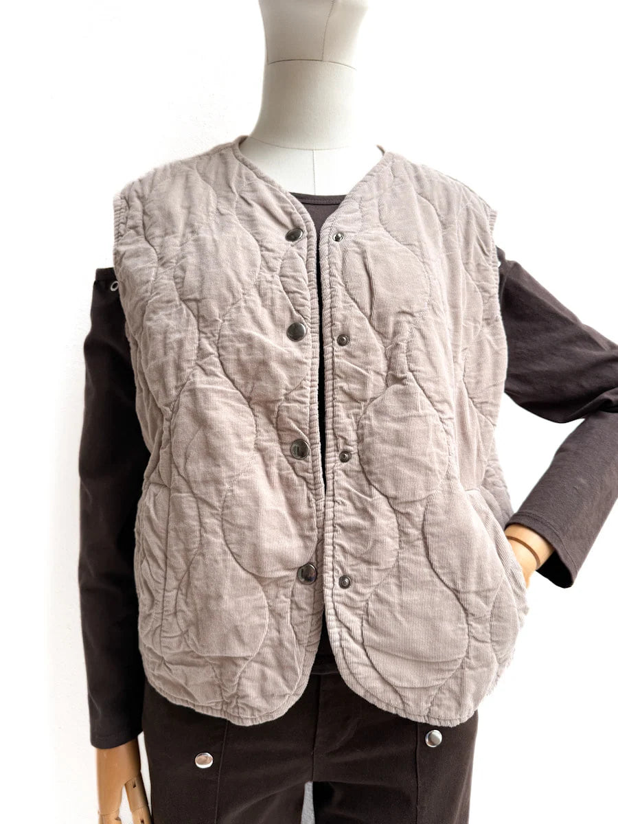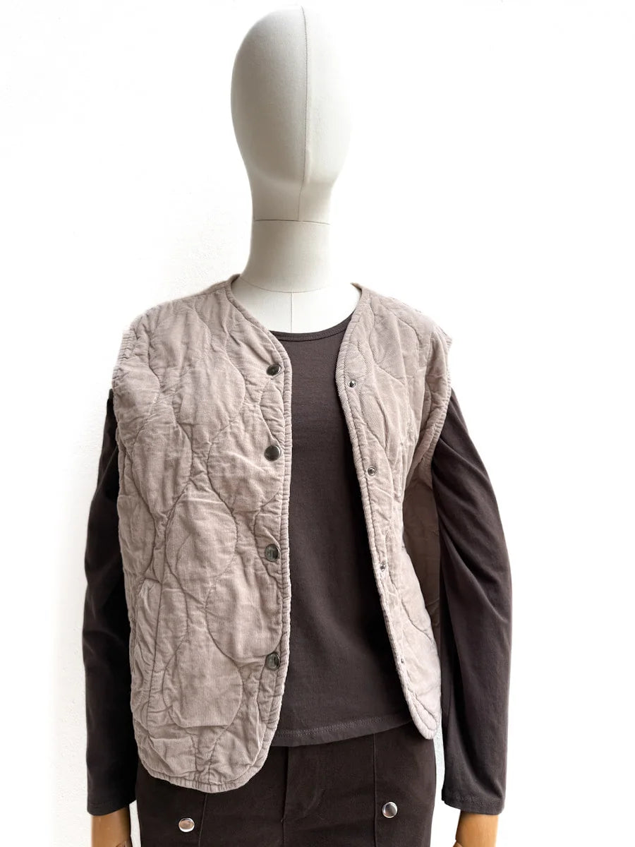 Chaleco Acolchado en Pana con Cierre de Botones