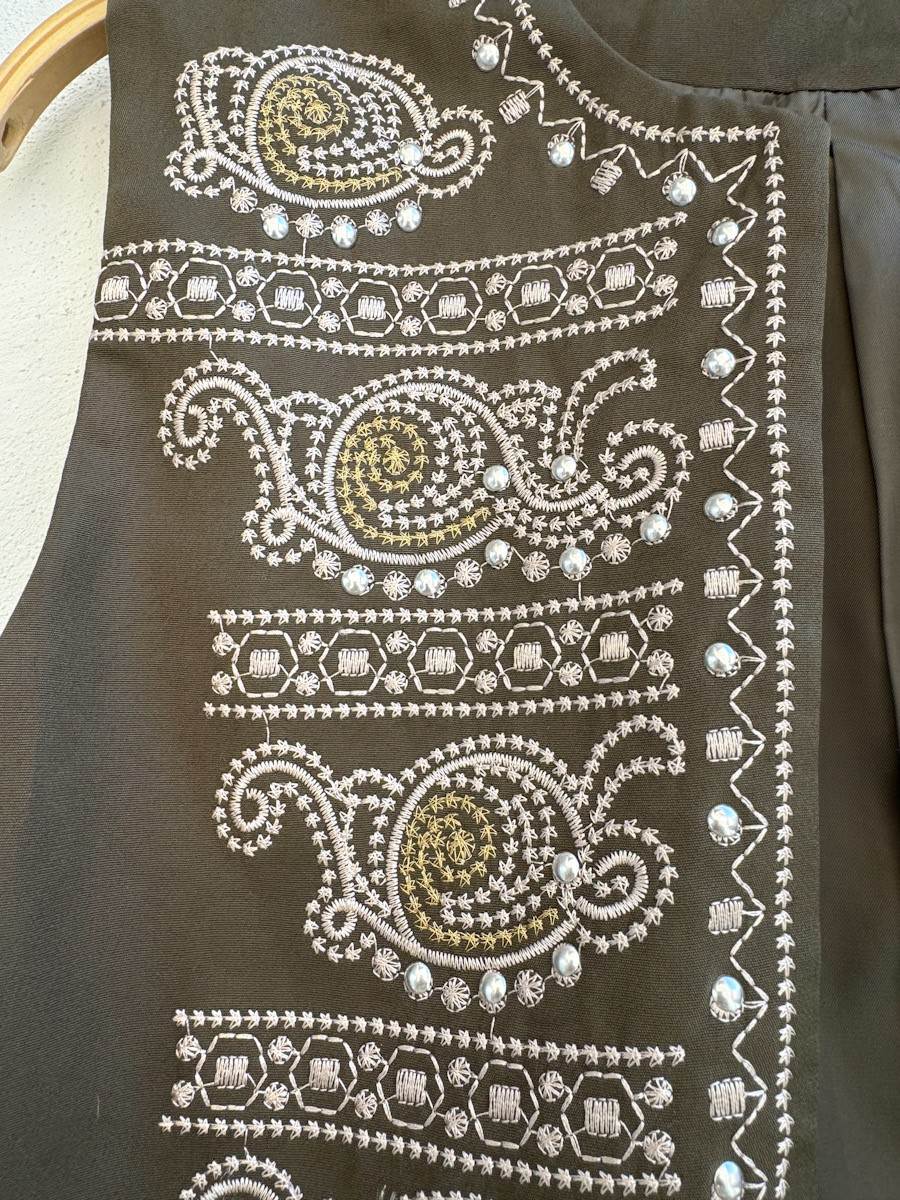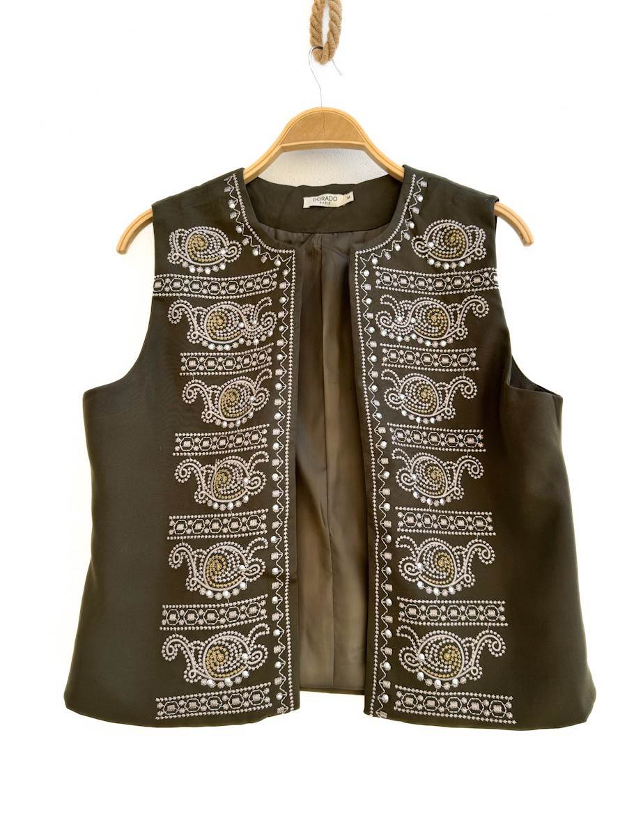 Chaleco bordado con chincheta, forrado.