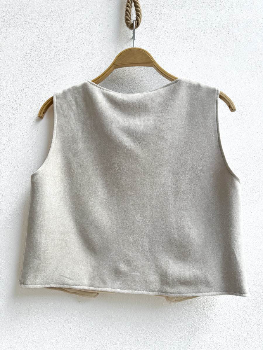 Chaleco Pedrería de antelina, forrado, talla S/M, M/L.