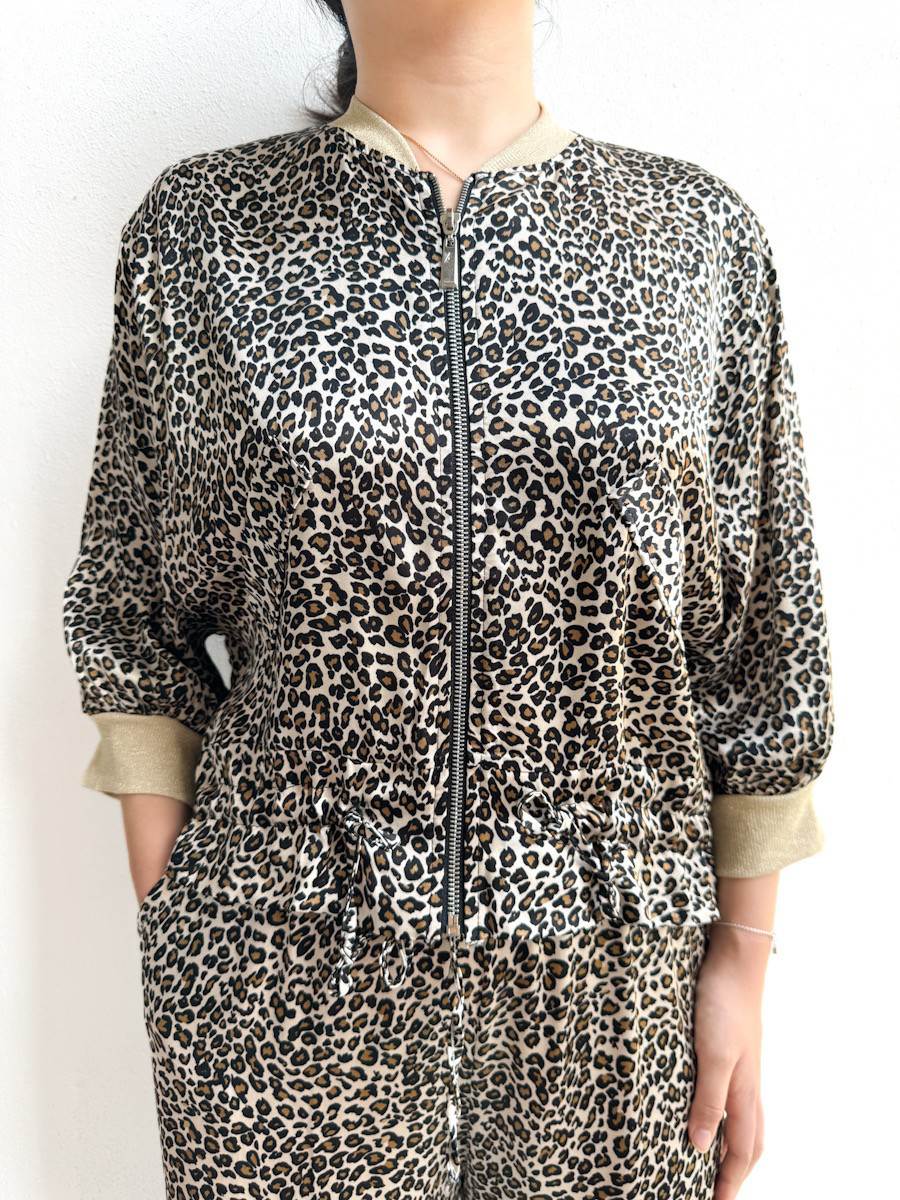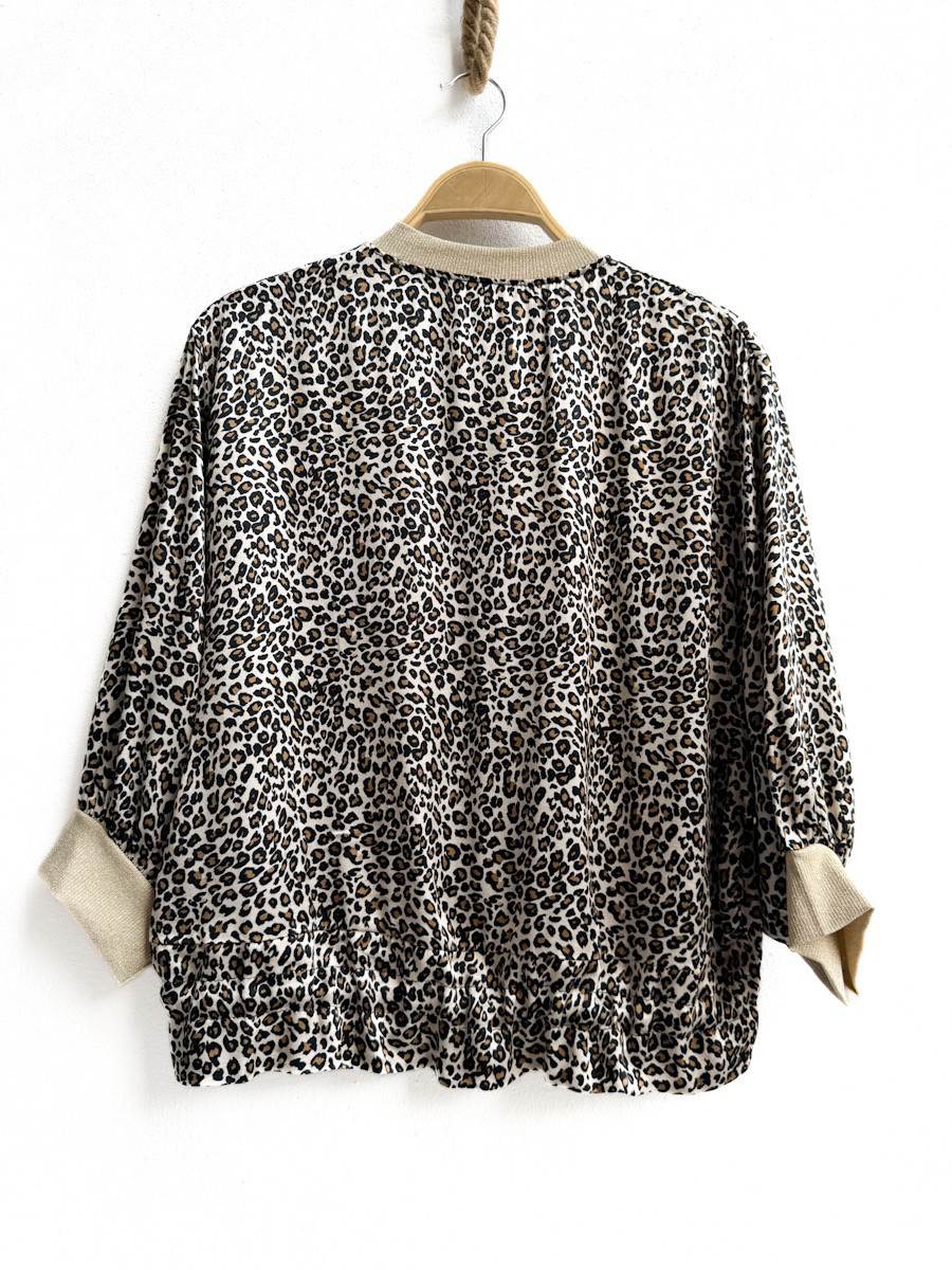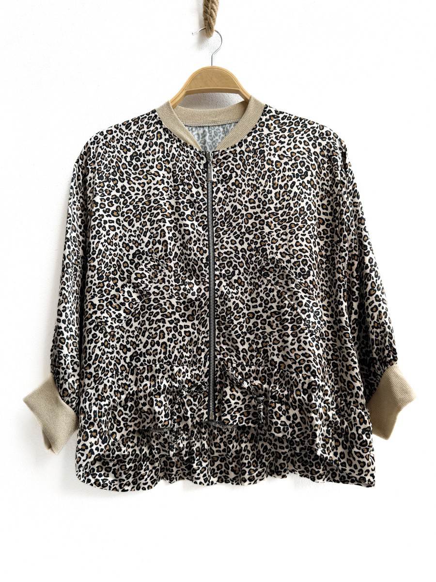 Bomber animal sprit con cuello darado, cierre con cremallera, talla única.