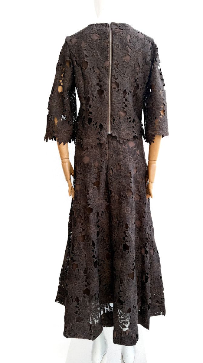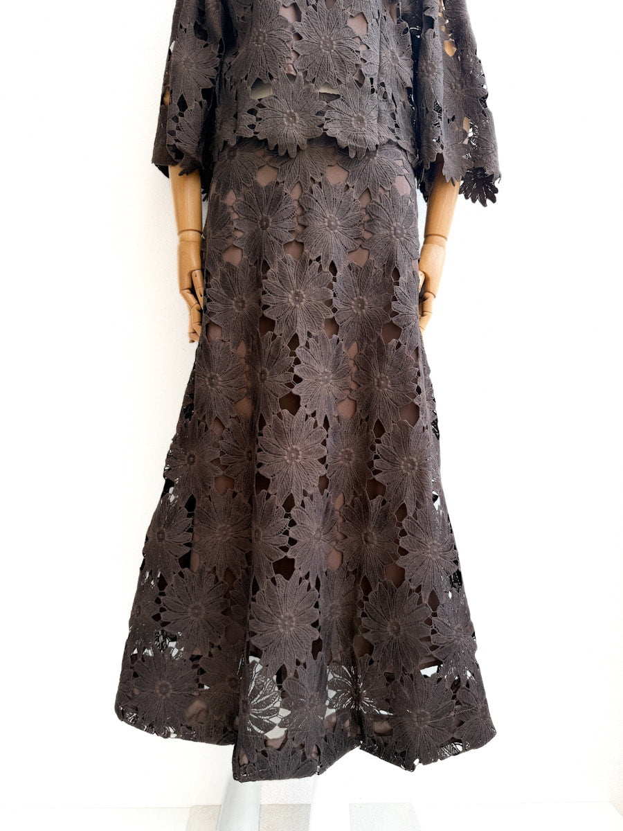 Este conjunto elegante de dos piezas es ideal para quienes buscan sofisticación y originalidad. Elaborado con tela calada de flores, ofrece un look delicado y moderno. La parte superior cuenta con mangas 3/4 y corte recto, mientras que la falda larga aporta movimiento y comodidad. El diseño semi-transparente crea un efecto ligero y femenino perfecto para eventos especiales o cenas elegantes.