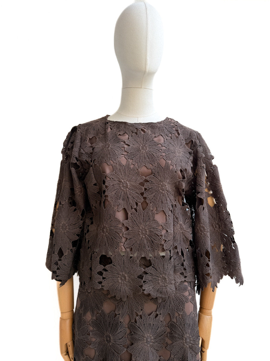 Conjunto calado de dos piezas con diseño floral