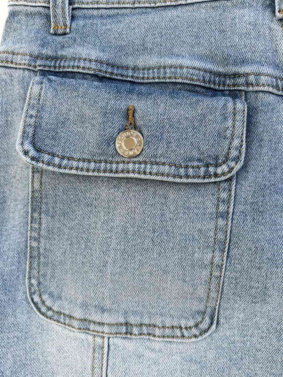 Destaca por sus múltiples bolsillos de parche con solapa y botones metálicos en la parte frontal, lo que le aporta un toque utilitario y funcional. Cuenta con trabillas para cinturón, cierre con botón y cremallera, lo que permite un ajuste cómodo. Ref. FW7972
