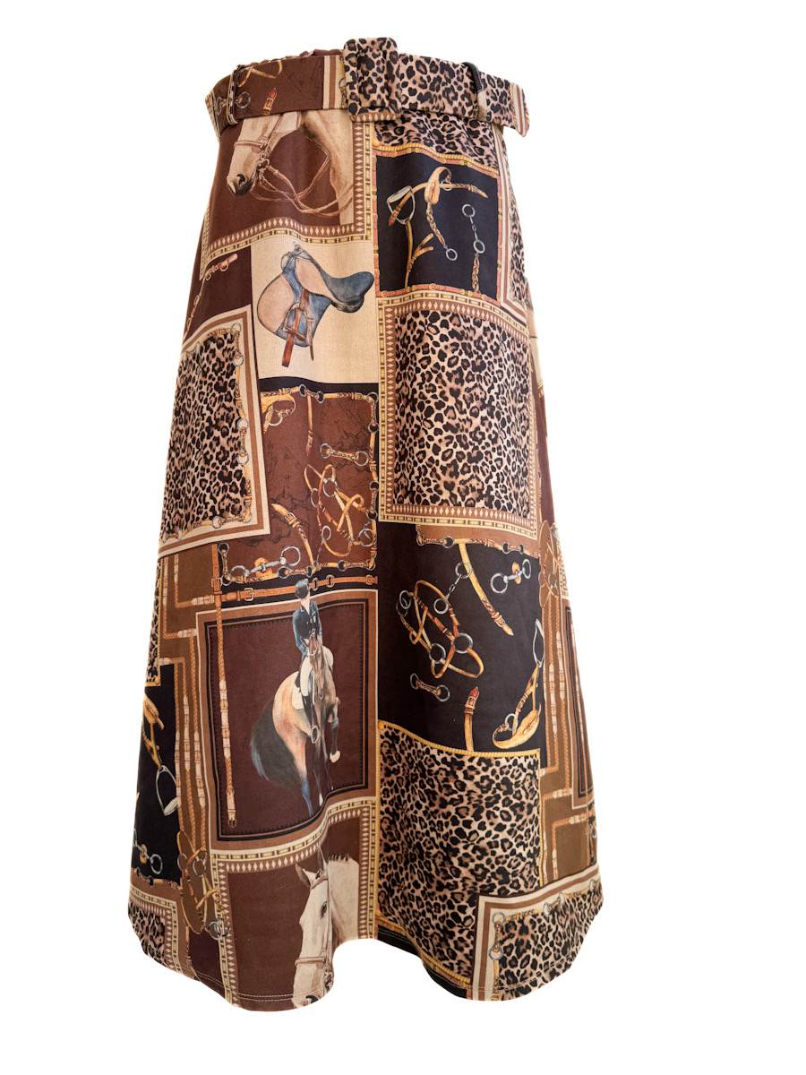 Falda Midi Estampado Ecuestre y Animal Print Marrón única