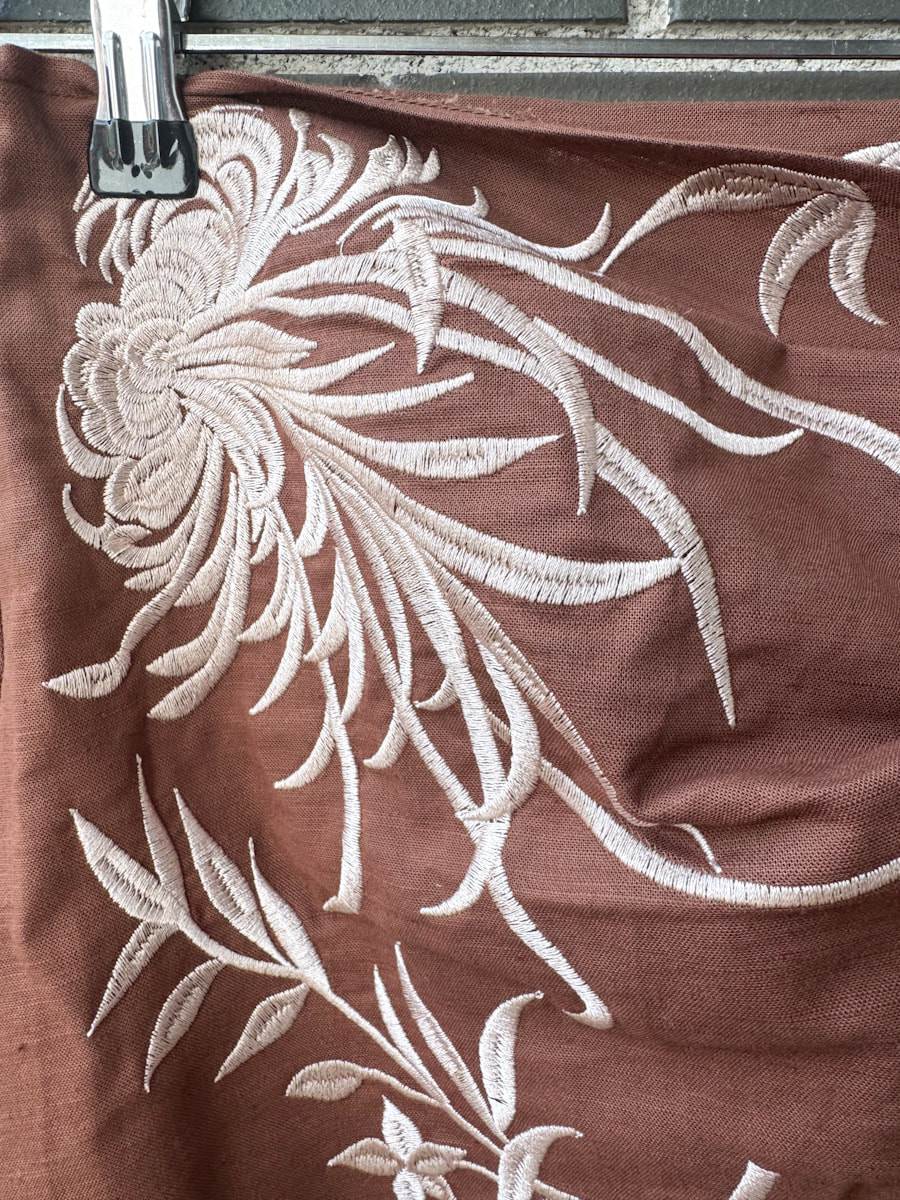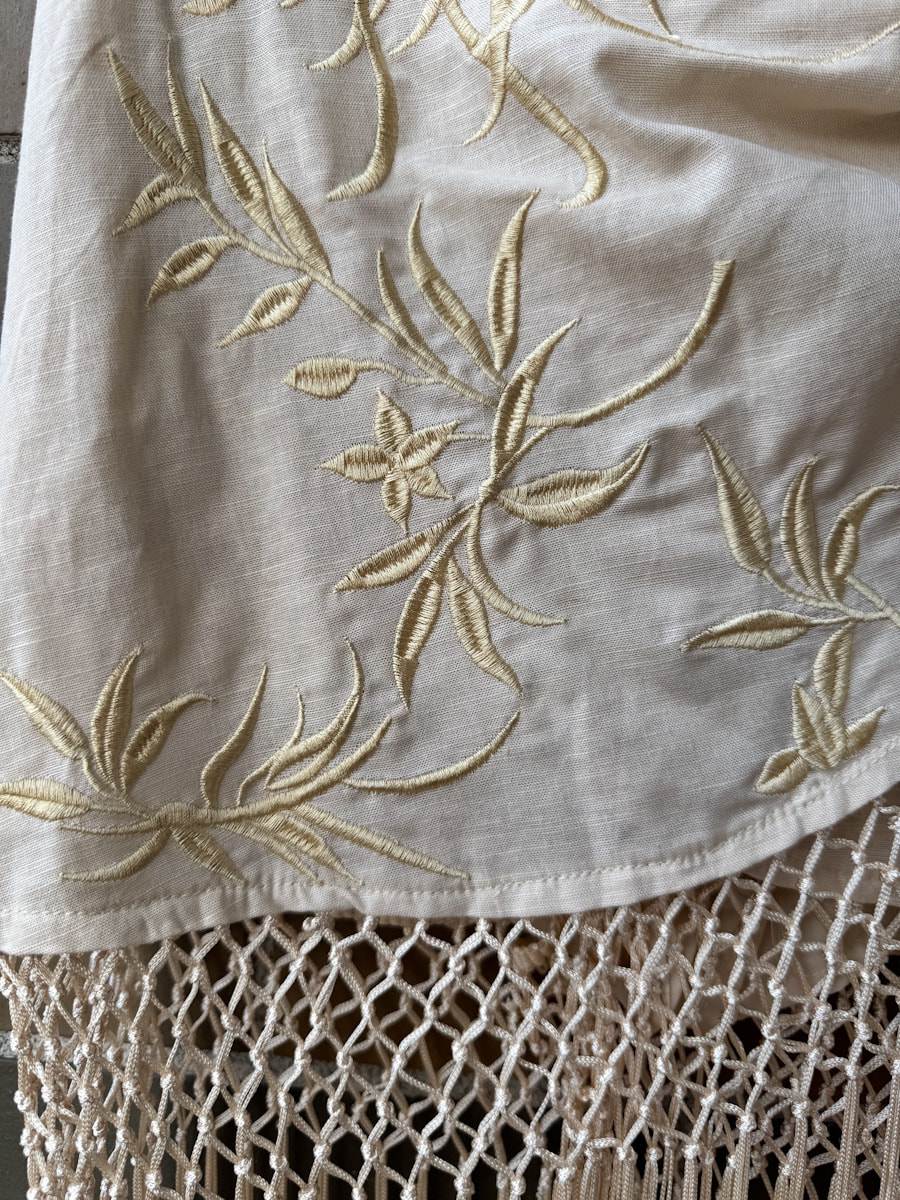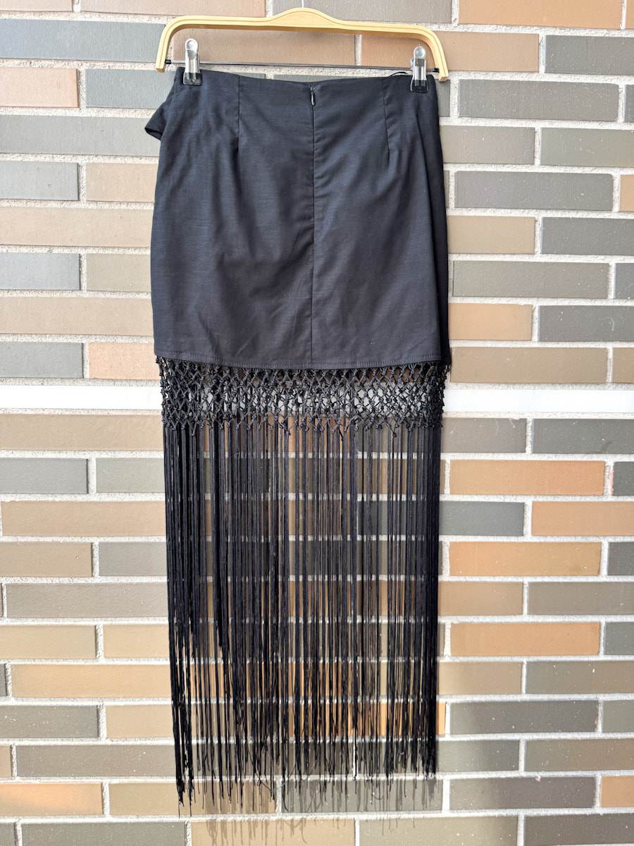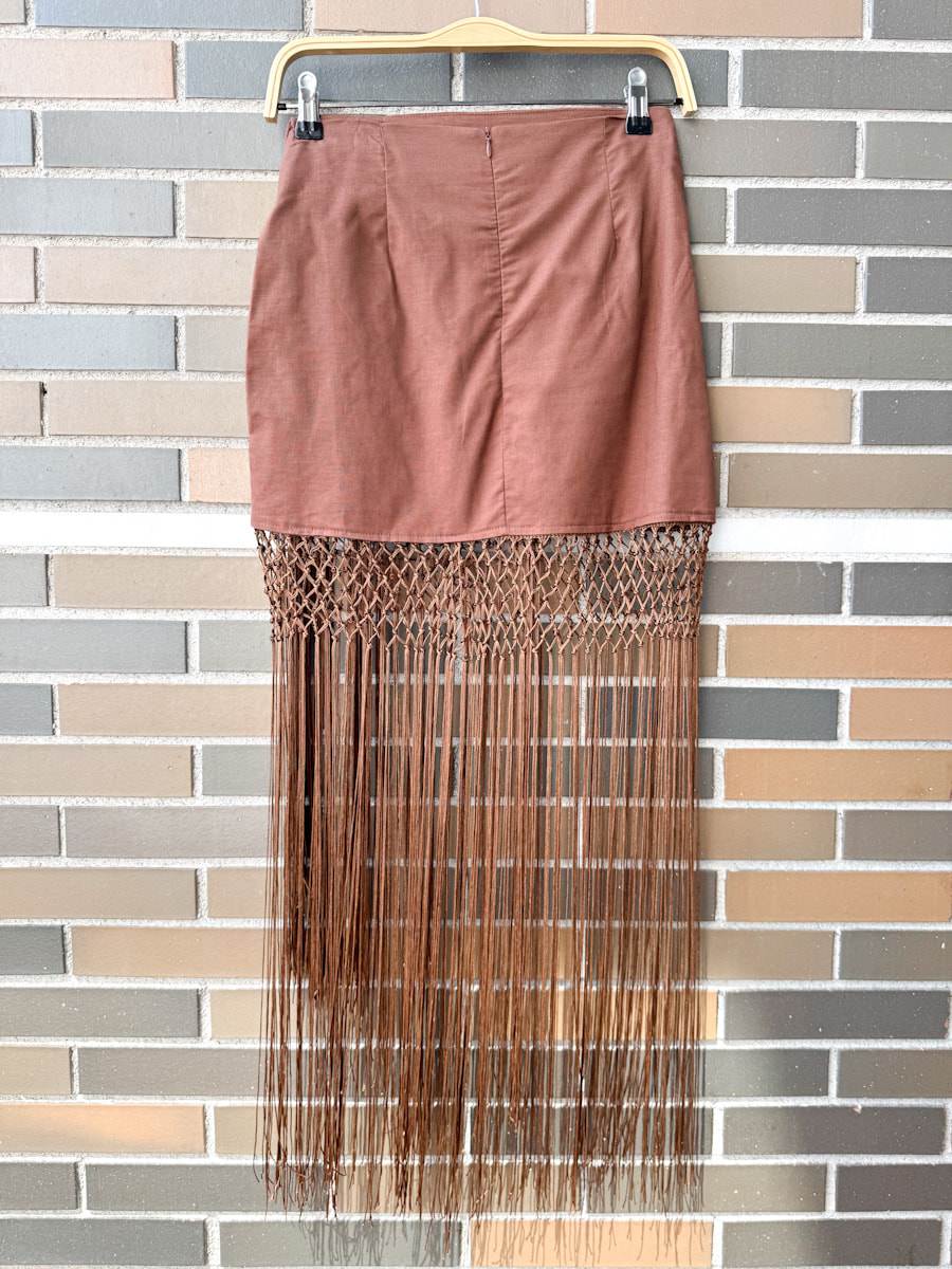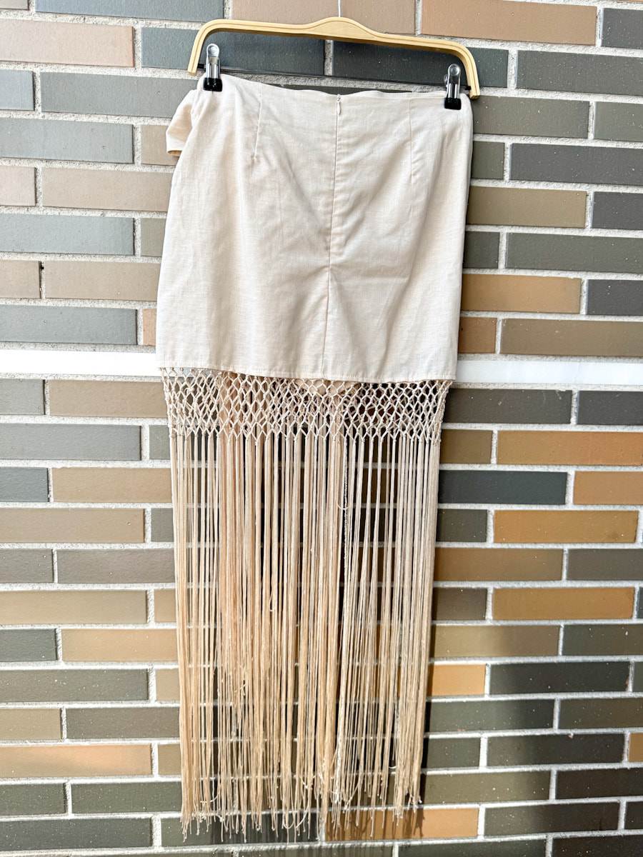Dale un toque bohemio y sofisticado a tu look con esta falda pareo única. Confeccionada en un tejido suave, presenta un elegante bordado floral en la parte superior y un espectacular detalle de flecos largos que aportan movimiento y estilo. Se ajusta con un lazo lateral para un calce personalizado y cómodo.