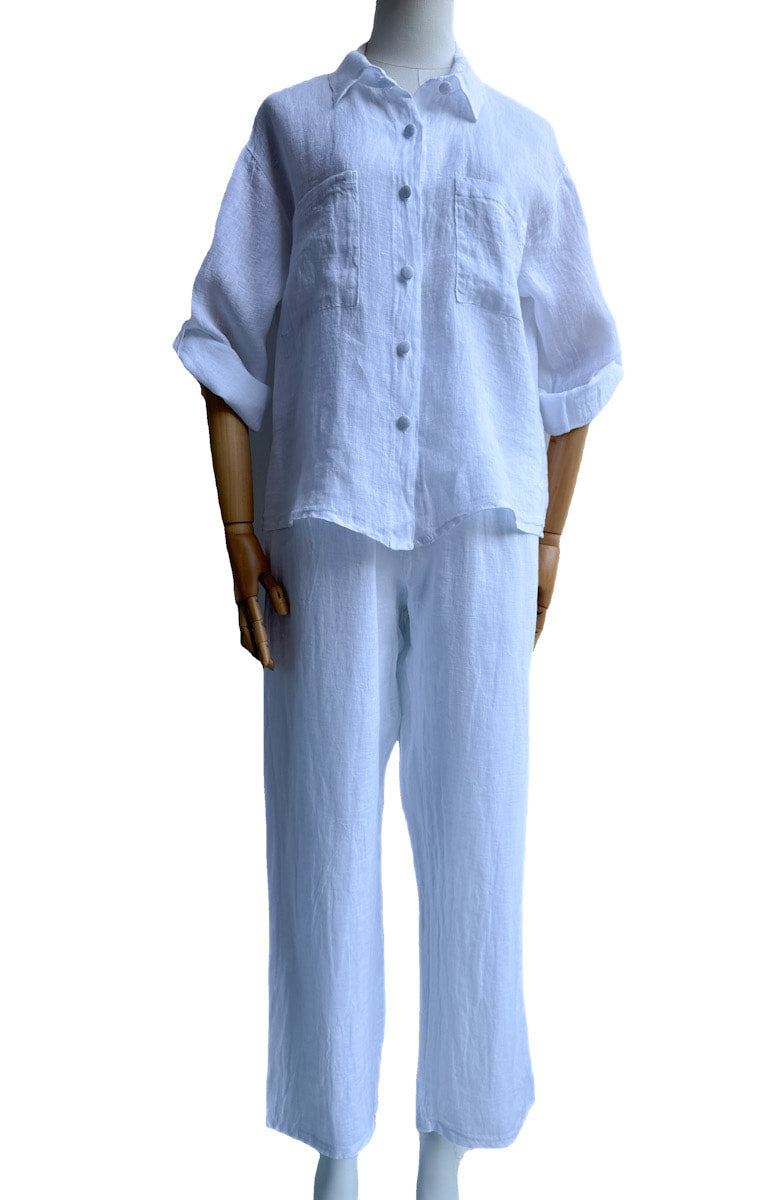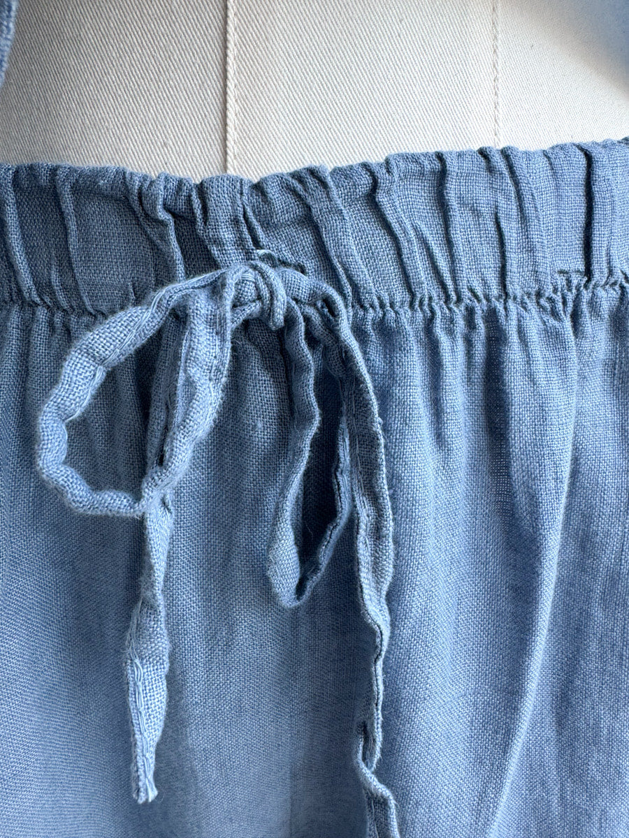 Pantalón de lino 100% fresco y ligero, ideal para el verano. Diseño de pierna recta con cintura elástica para mayor comodidad; incluye lazo decorativo como detalle de adorno. Perfecto para un look casual, relajado o combinarlo con tops de lino a juego.