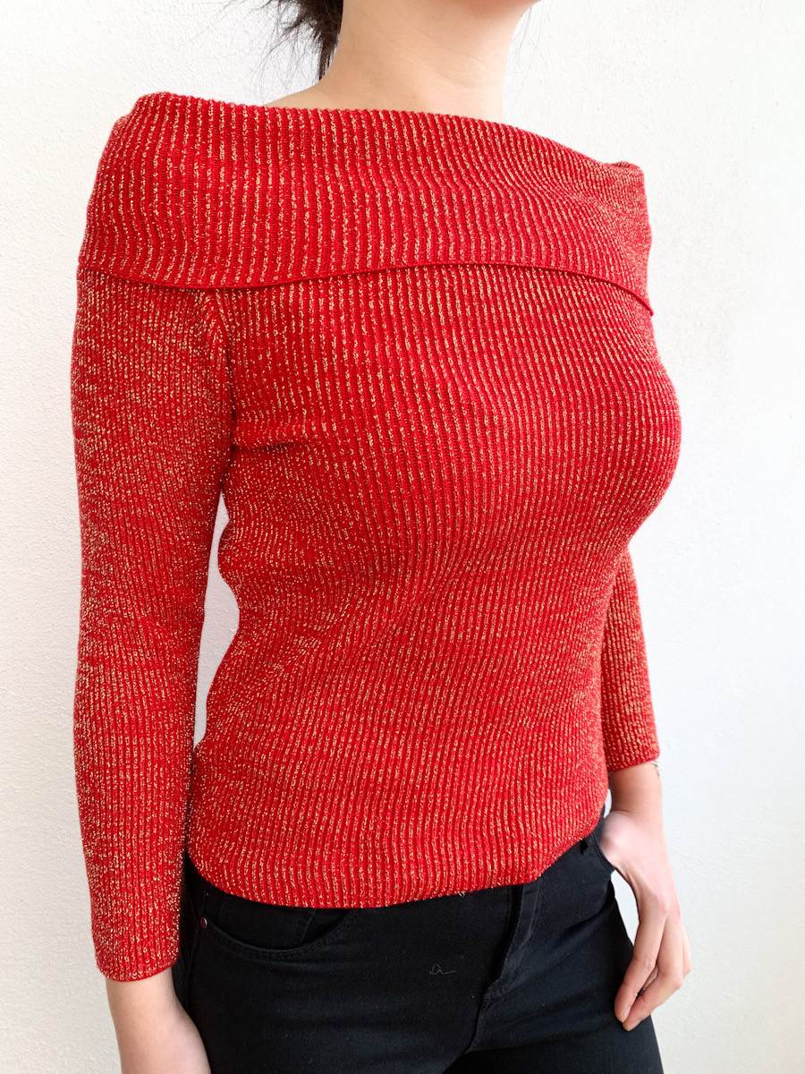 Jersey 0805 de punto con hombros al descubierto Rojo