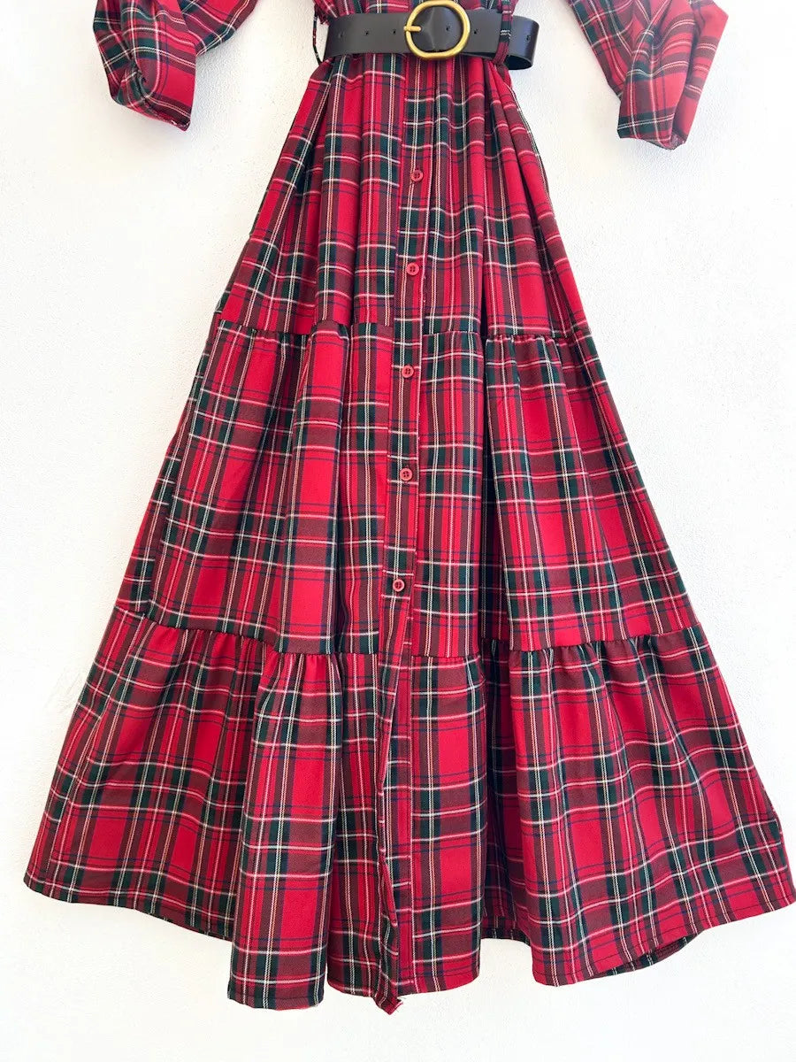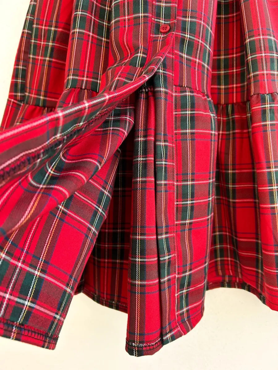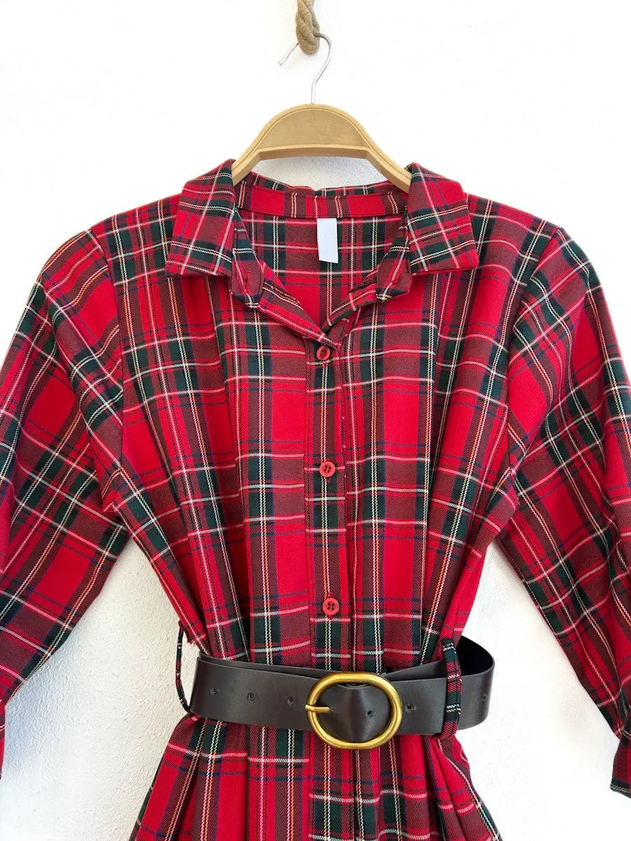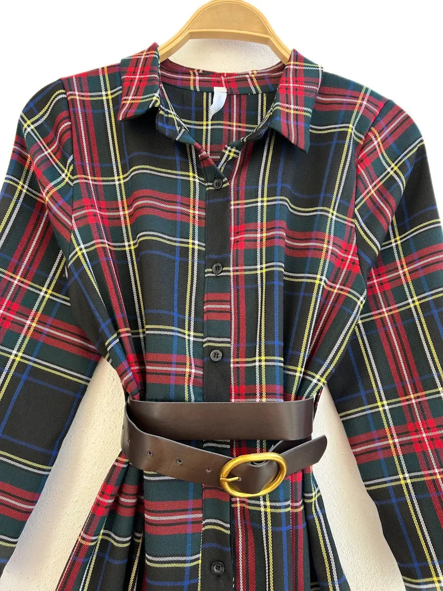 Vestido de cuadros con cuello camisero y cierre con botones .
