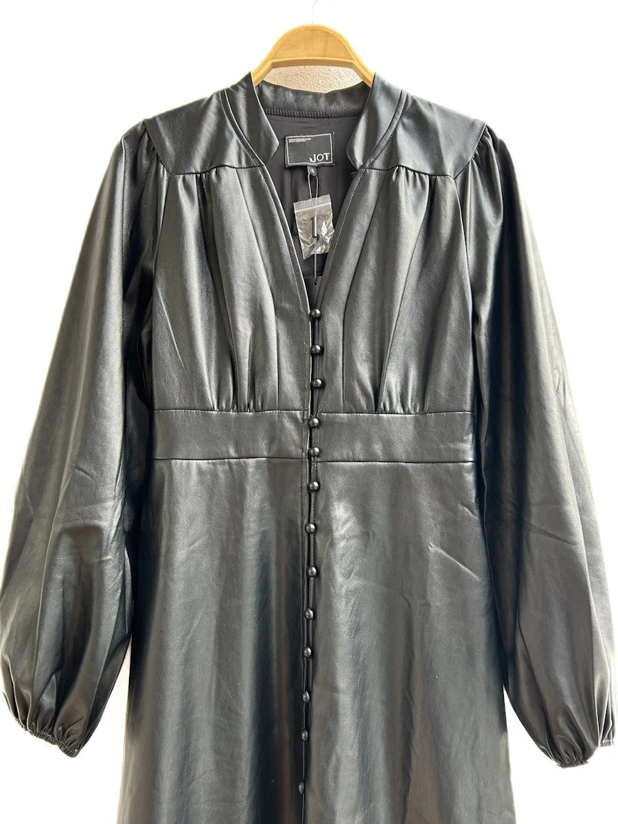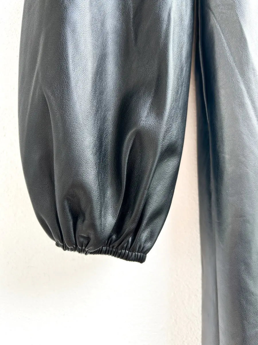 Vestido Largo de Polipiel Negro Con Falda Marrón
