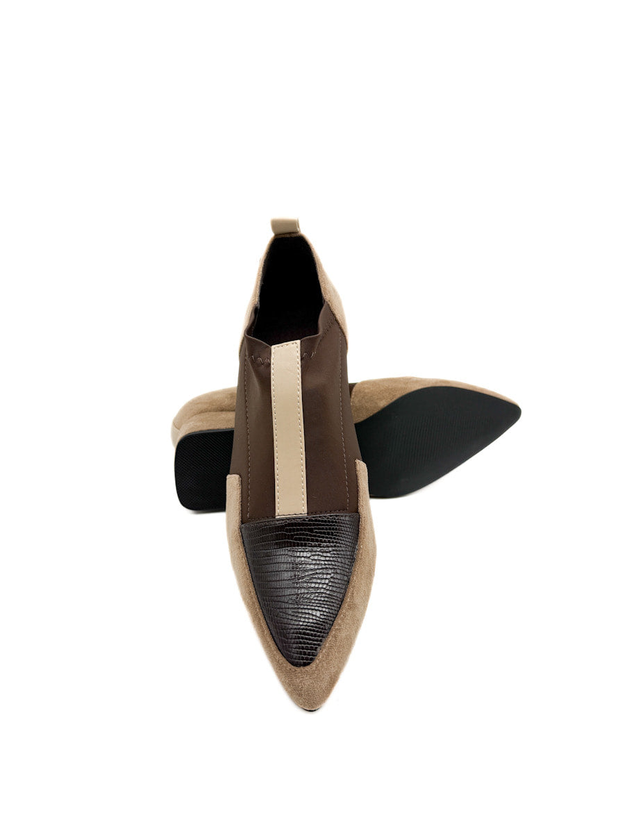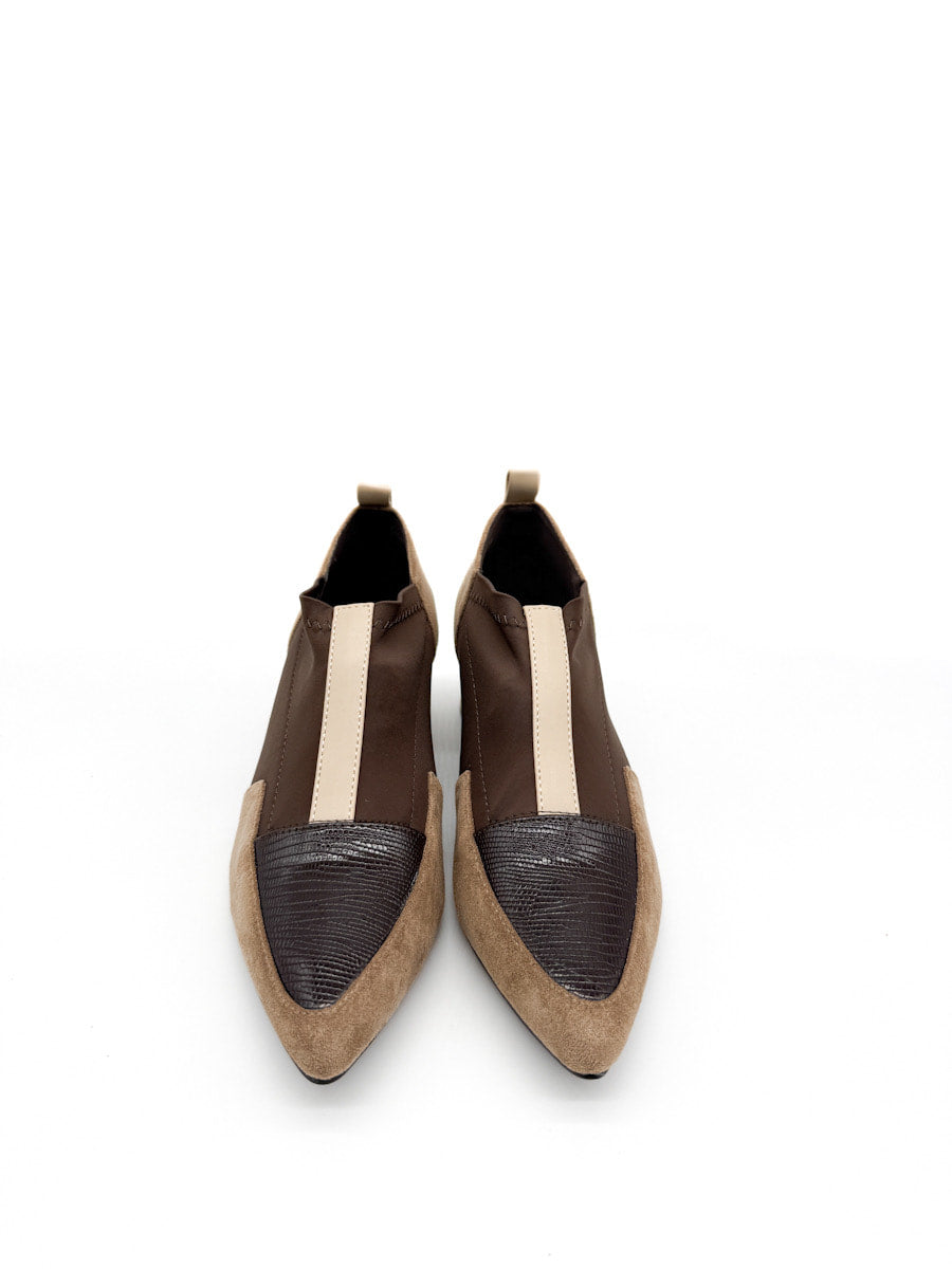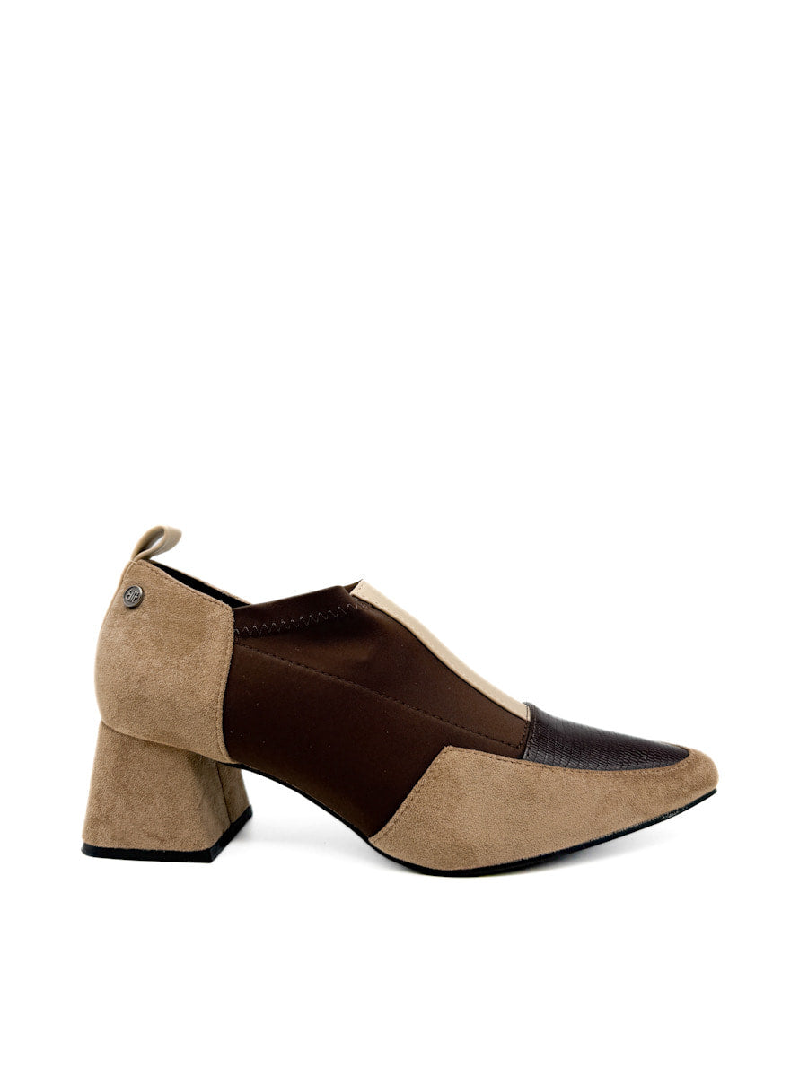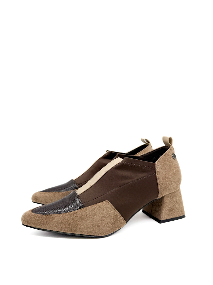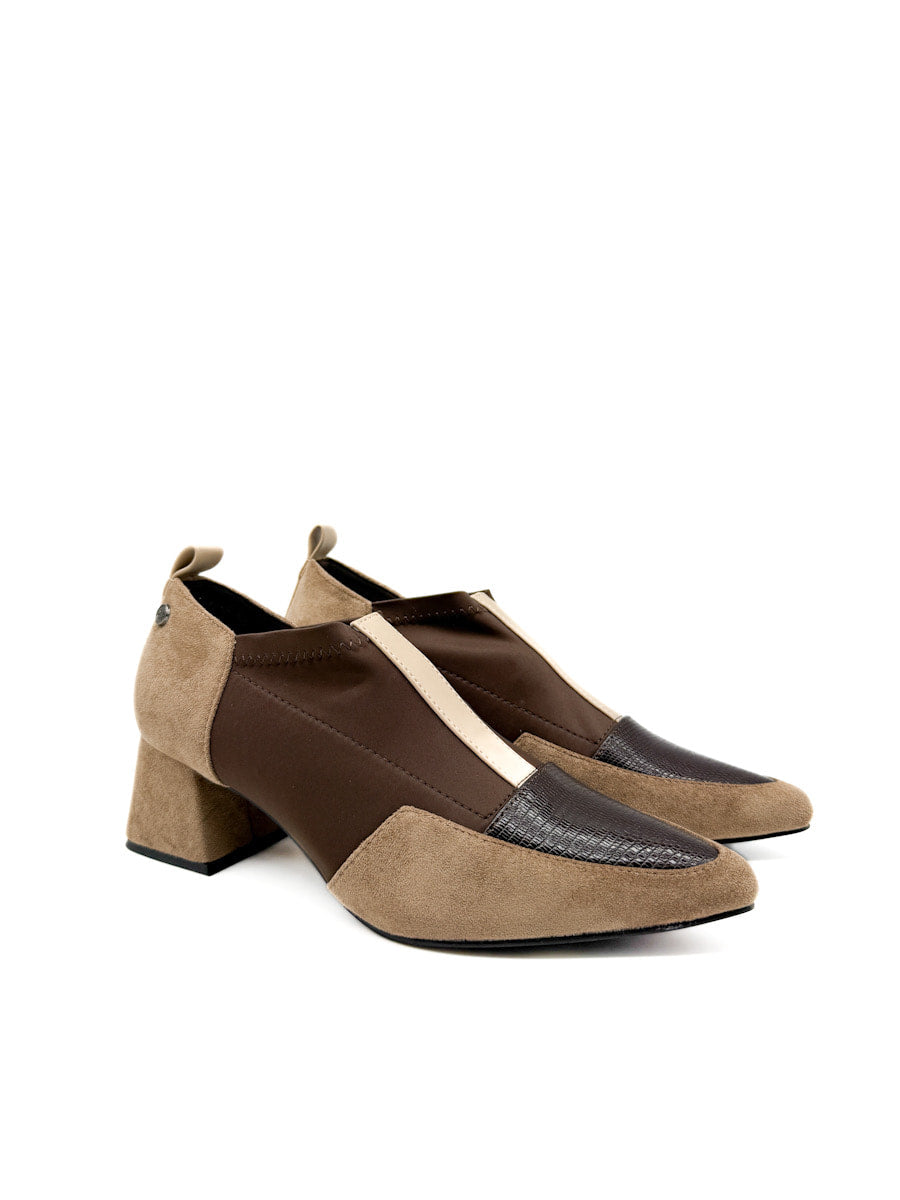 Zapatos de Tacón Bajo con Diseño de Bloques de Color y Texturas Mixtas. Marrón