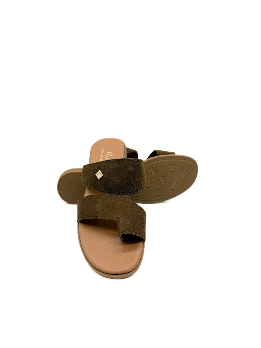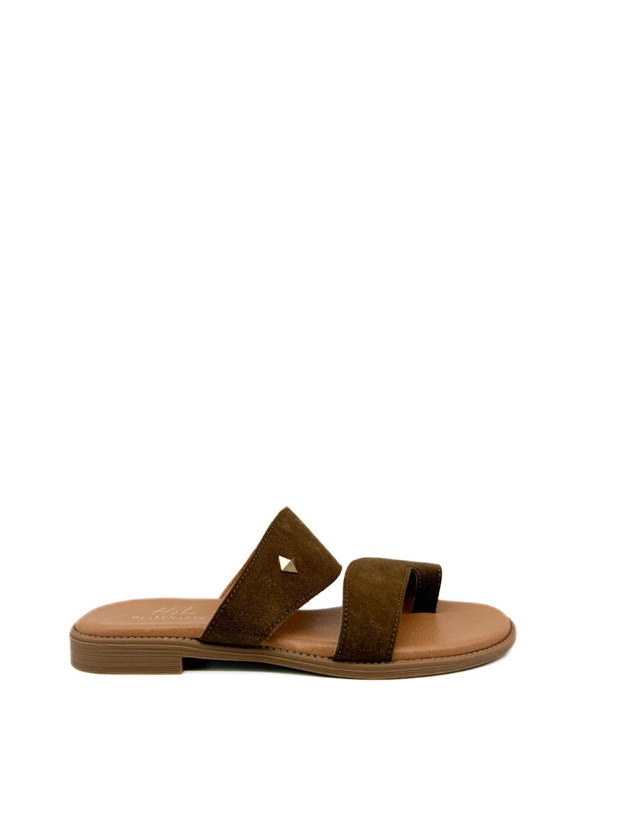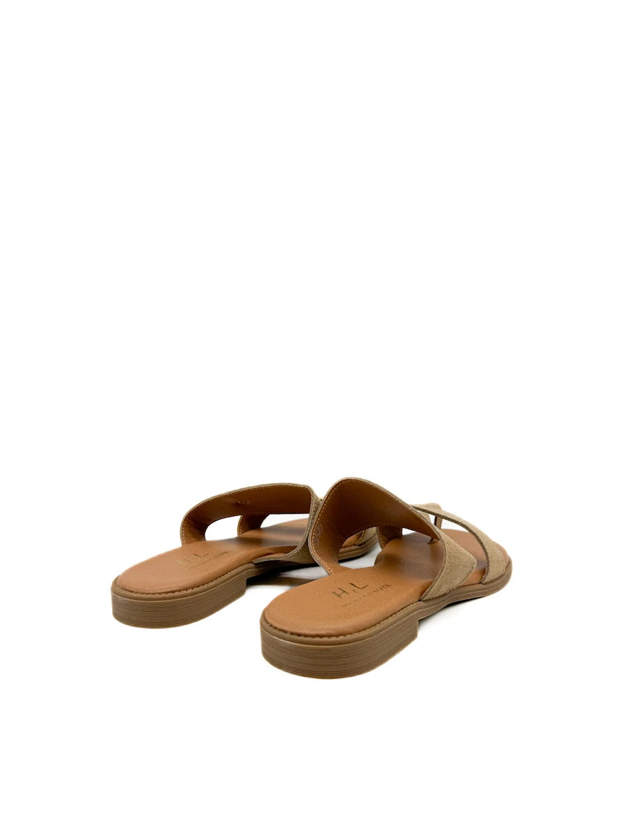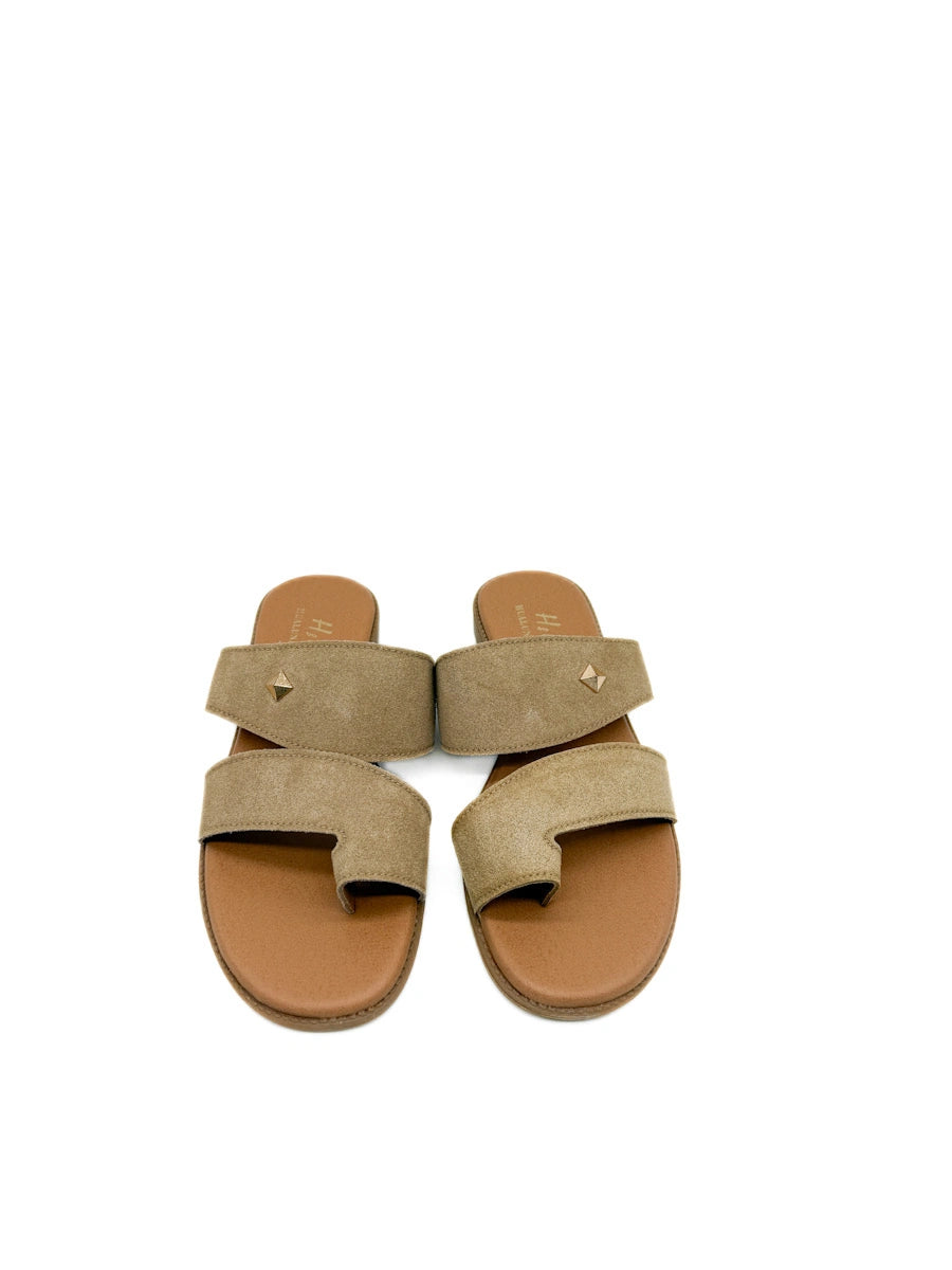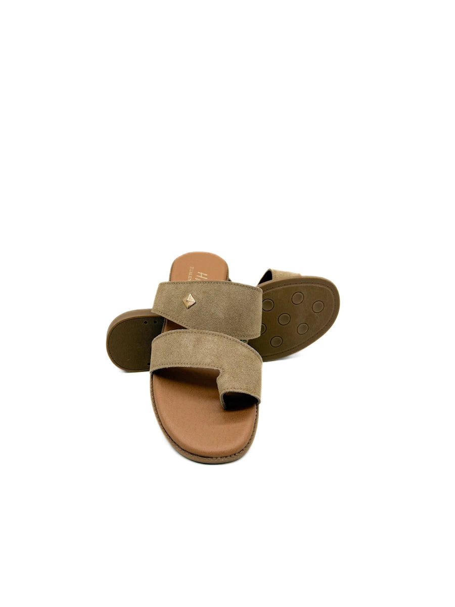 Sandalias planas para mujer presentan un diseño moderno y minimalista de estilo anillo al dedo, confeccionadas en un suave material de antelina que aporta una textura cálida y sofisticada. Destacan por su estructura de correas anchas cruzadas que ofrecen una sujeción segura y confortable, adornadas con un discreto detalle metálico en forma de rombo que añade un toque de brillo sutil. La combinación de tonos tierra, disponibles en marrón y beige , junto con una plantilla acolchada en color canela y una suela ligera, las convierte en el calzado versátil ideal para el día a día durante la temporada de primavera-verano, equilibrando a la perfección la comodidad ergonómica con un estilo casual refinado.
