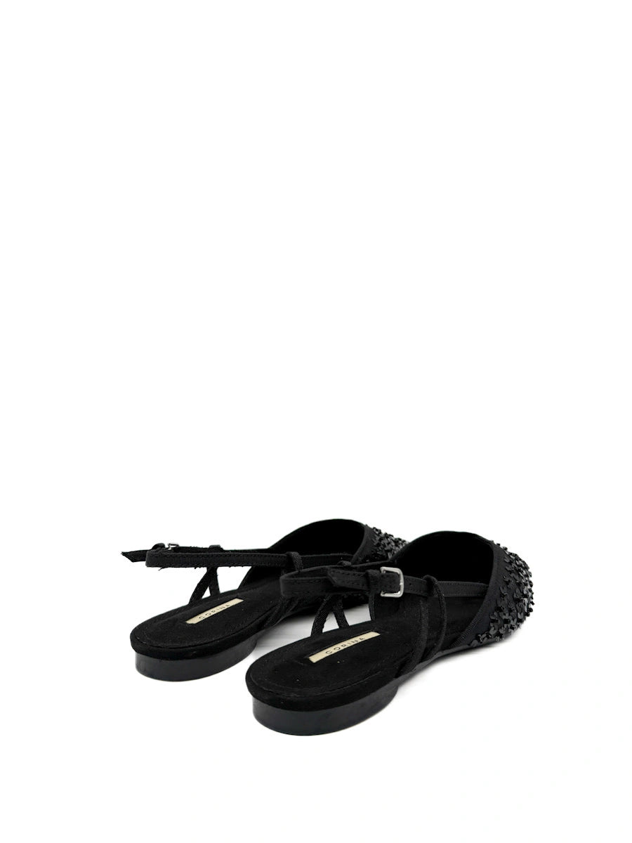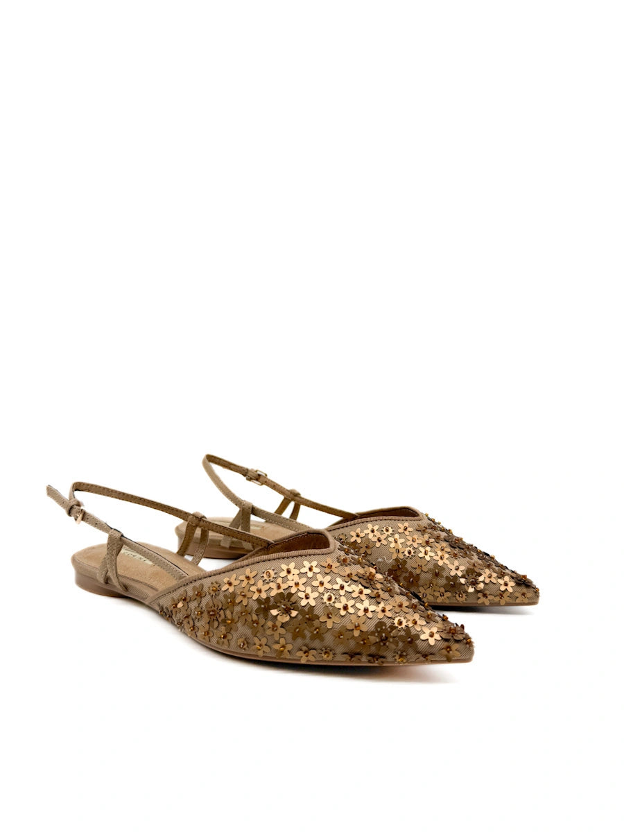 Zapatos destalonados Corina: Punta Fina con Flores y Lentejuelas de Brillo