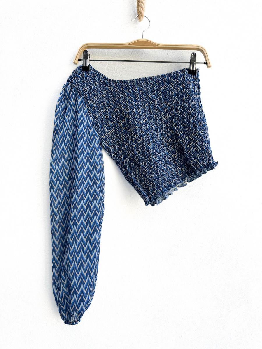 Top asimétrico, manga larga, largo corto, talla única (XS, S, M)