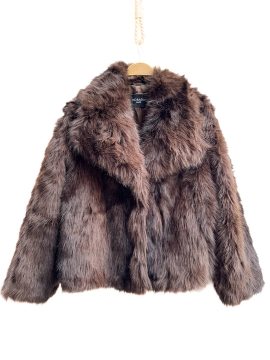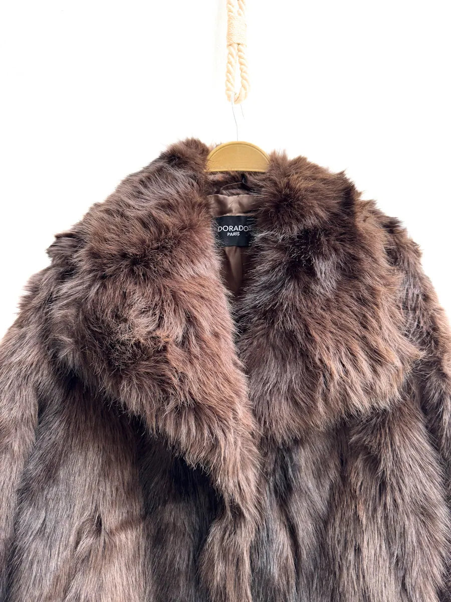 Añade un toque de elegancia y calidez a tus looks con este sofisticado abrigo efecto pelo en tono marrón. Su textura suave y esponjosa aporta confort durante los días fríos, mientras que su diseño corto y moderno lo convierte en una prenda versátil y fácil de combinar. Ref.CHACA8770CF
