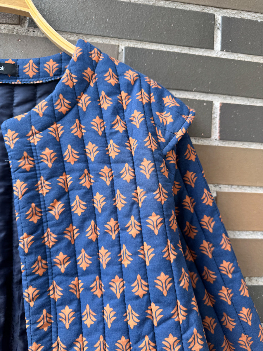 Esta chaqueta acolchada es una pieza única, confeccionada a mano por artesanas con materiales naturales y cuidado en cada detalle. Su diseño combina la tradición textil con un estilo contemporáneo, creando una prenda cómoda, ligera y elegante.